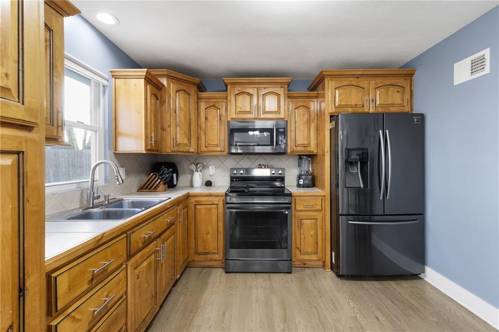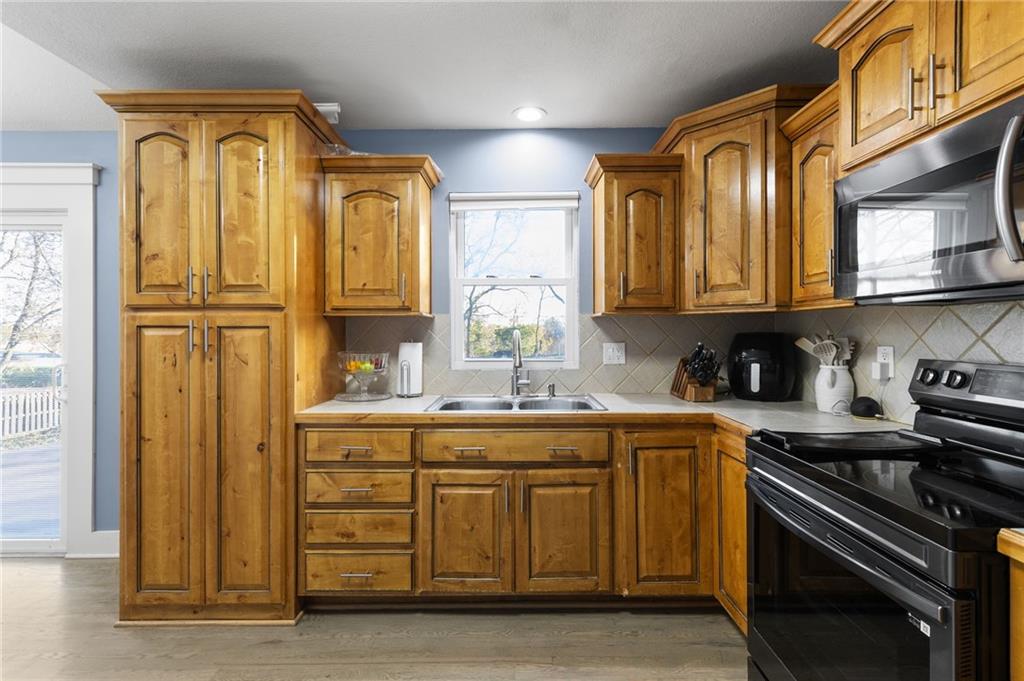 Welcome to this beautifully updated raised ranch! NEW ROOF AND GUTTERS installed last year. This home offers 3 bedrooms and 1.5 bathrooms, thoughtfully renovated throughout. Enjoy the refreshed bathrooms, and a gorgeous kitchen featuring real wood cabinets. The gleaming stained wood floors add warmth and character, while the finished basement offers a spacious recreation room that could serve as an additional bedroom or home office. The attached garage accommodates two vehicles, and the backyard is perfect for entertaining or relaxing outdoors. Conveniently located near major highways, you’ll have quick access to The Legends and Missouri in just minutes. Schedule your private tour today and discover all this home has to offer!