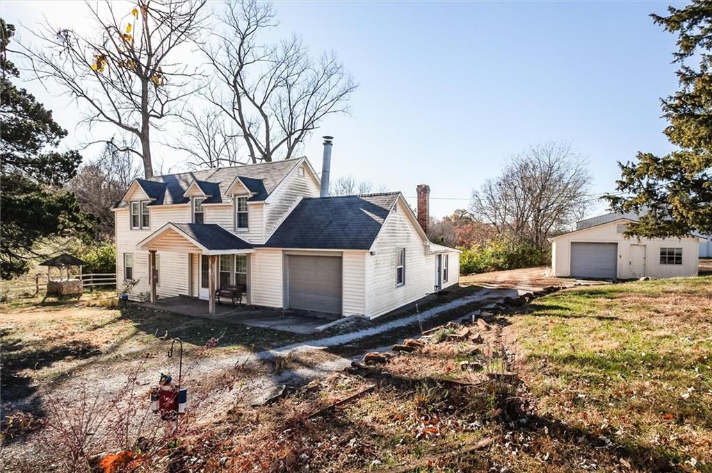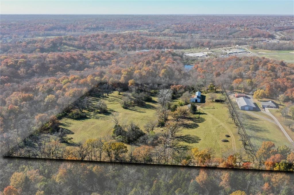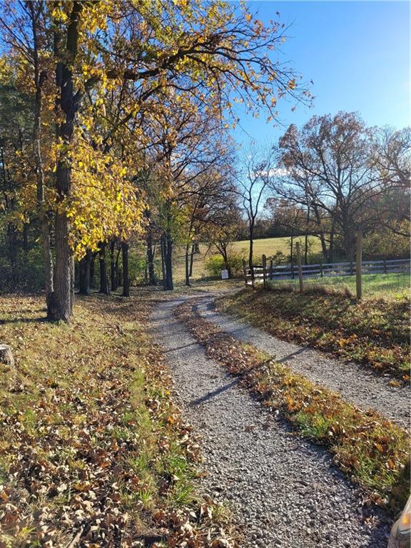 10 Acre WOODED PARADISE IN LEE'S SUMMIT SCHOOL DISTRICT. PRIVATE tree-lined gravel drive opens to spectacular rolling hills, abundant wildlilfe, walnut trees, 2-story house & garage, detached 1-car w/shop, 5-stall HORSE BARN with indoor arena. Fenced pastures. Perfect Opportunity to own your oasis/retreat without the long commute. Home needs updating but in solid condition, central heat for easy add of central air. Kitchen appliances stay. Build your dream home in a storybook setting that is uniquely beautiful or just relax and enjoy some hot chocolate and watch the deer from your porch.