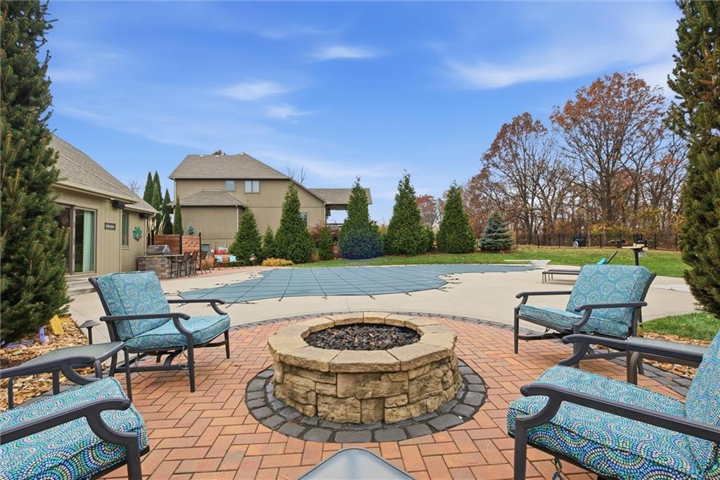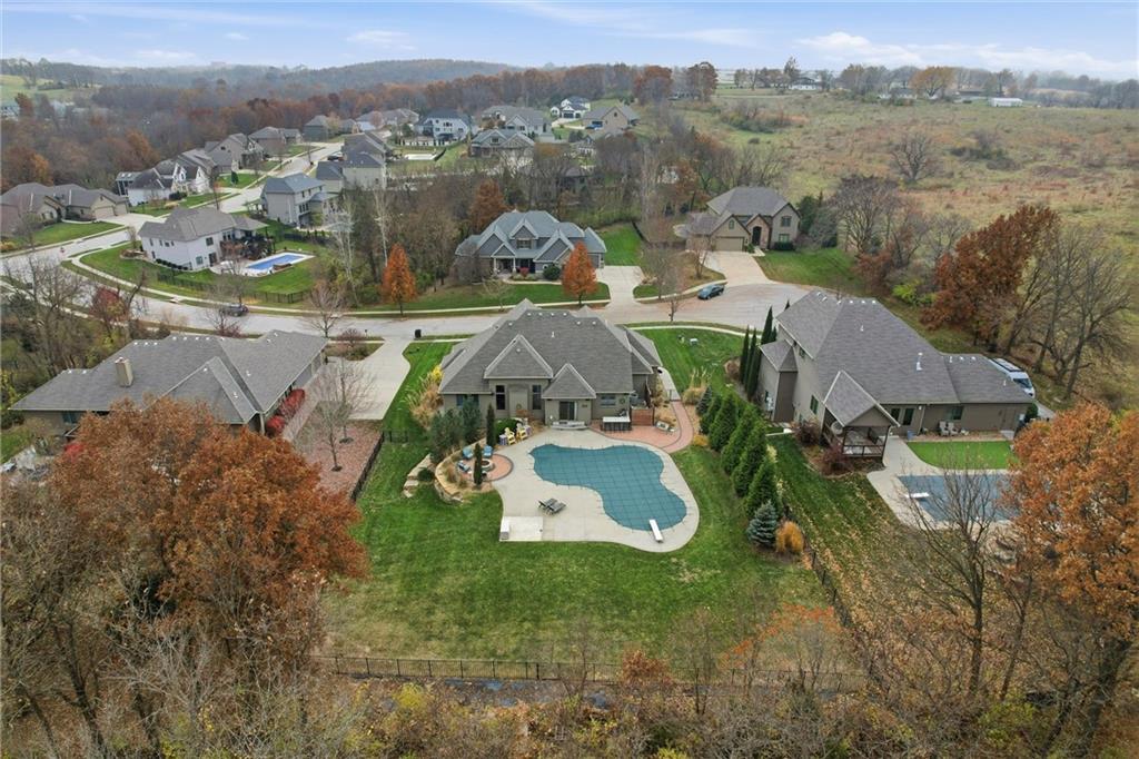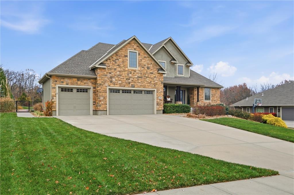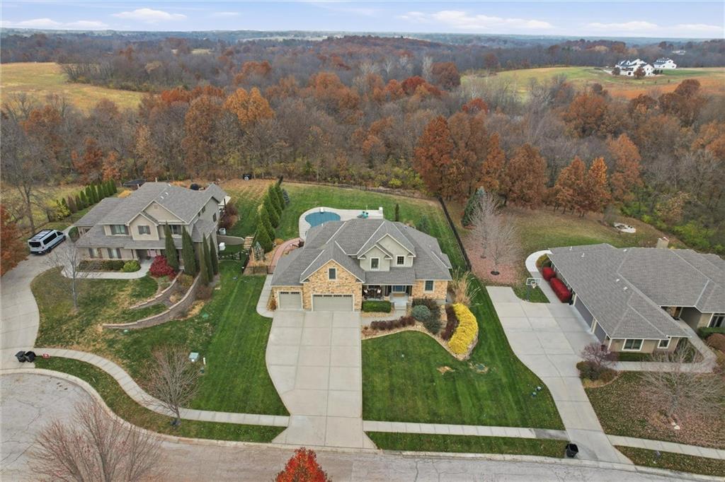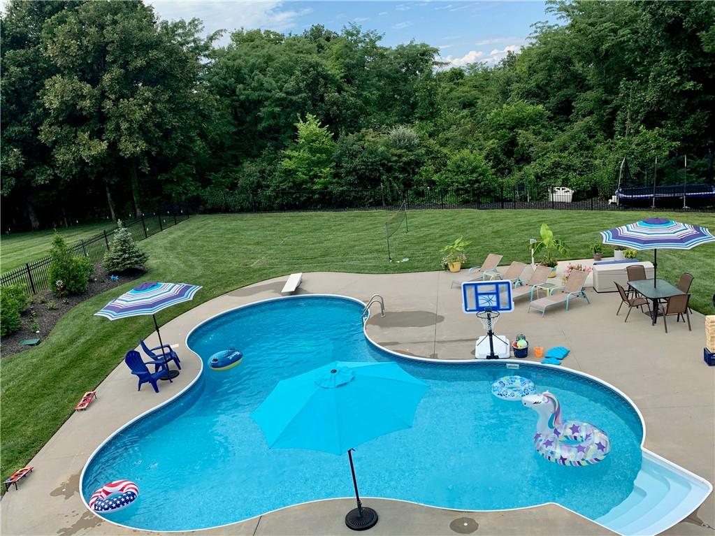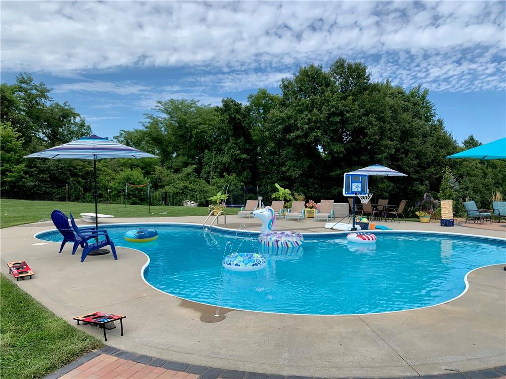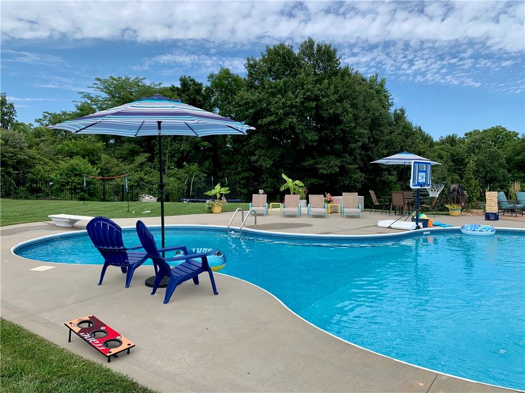 1.5 Story Home features backyard oasis with pool, fire pit and outdoor cooking area! It's time to truly LOVE where you live! Step inside this gorgeous home with vaulted ceilings, stone fireplace, hardwood floors, eat-in kitchen, granite countertops, stainless steel appliances to include gas range & double oven. Massive mudroom with utility sink and drop zone. Main level dedicated office or guest room. Primary bedroom with jetted tub, tiled shower, walk-in closet. Finished lower level walk-out with custom bar, movie theatre, stone fireplace. Second level provides generously sized bedrooms, one with private bath and the other two with jack and jill shared bath. Home backs to trees and is located on a cul-de-sac. Upgraded landscaping provides the perfect amount of privacy to enjoy your resort style backyard!