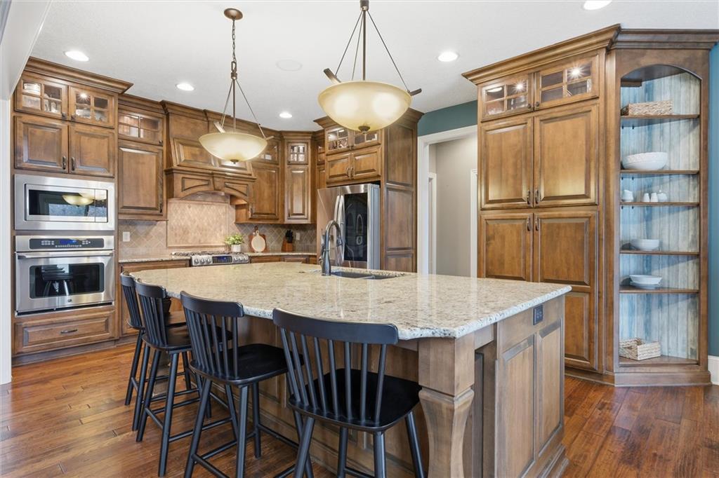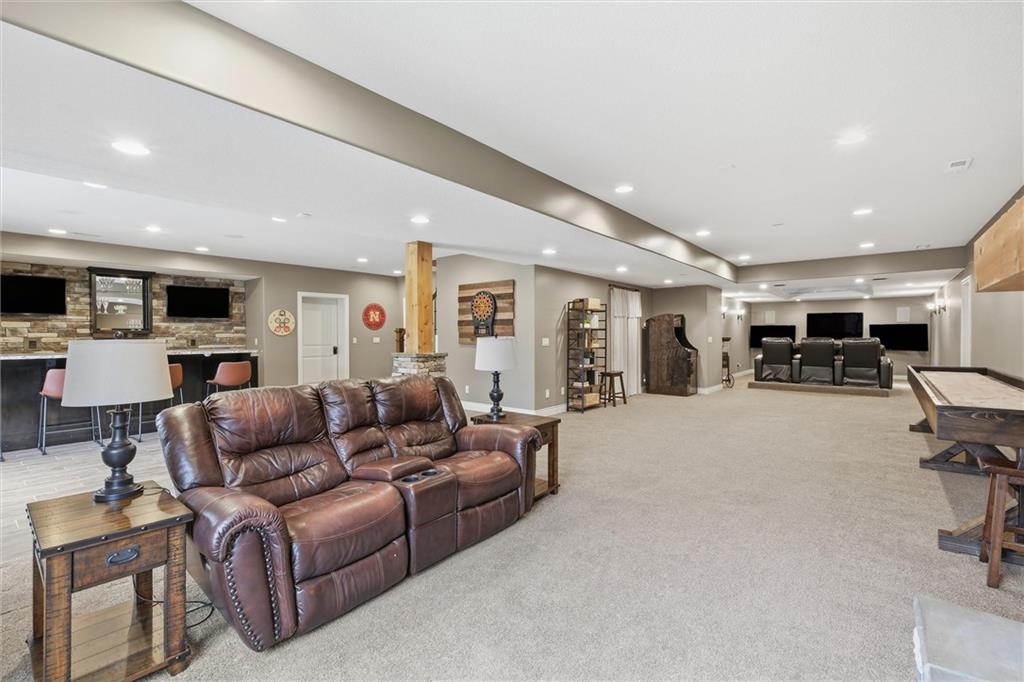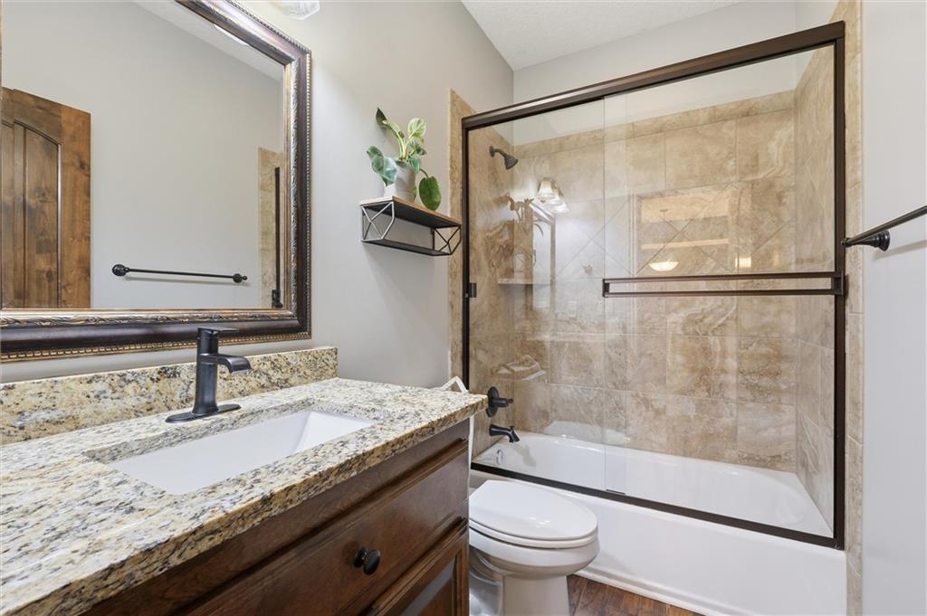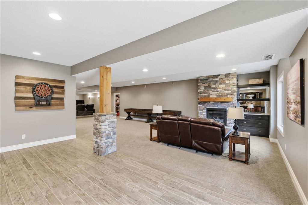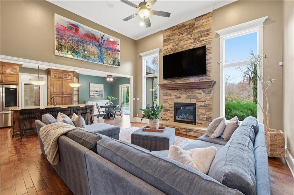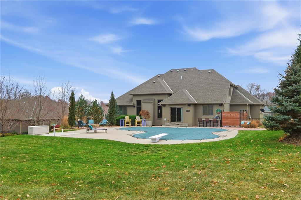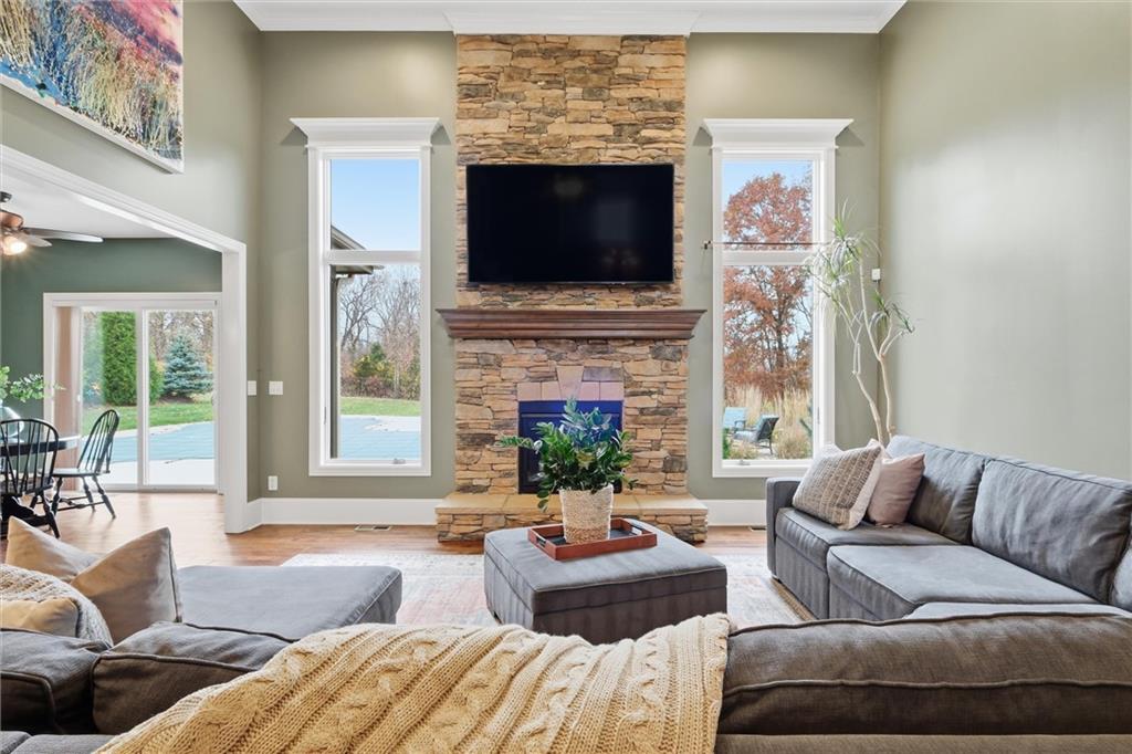 1.5 Story Home features backyard oasis with pool, fire pit and outdoor cooking area! It's time to truly LOVE where you live! Step inside this gorgeous home with vaulted ceilings, stone fireplace, hardwood floors, eat-in kitchen, granite countertops, stainless steel appliances to include gas range & double oven. Massive mudroom with utility sink and drop zone. Main level dedicated office or guest room. Primary bedroom with jetted tub, tiled shower, walk-in closet. Finished lower level walk-out with custom bar, movie theatre, stone fireplace. Second level provides generously sized bedrooms, one with private bath and the other two with jack and jill shared bath. Home backs to trees and is located on a cul-de-sac. Upgraded landscaping provides the perfect amount of privacy to enjoy your resort style backyard!
