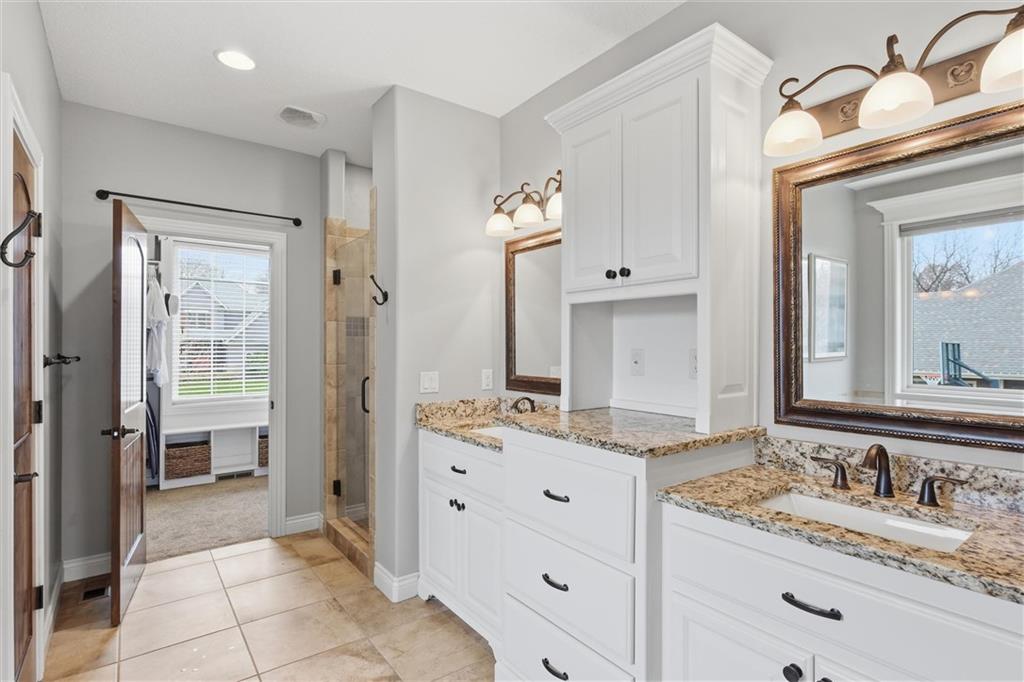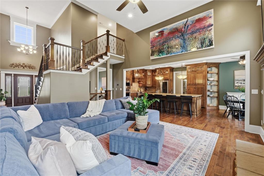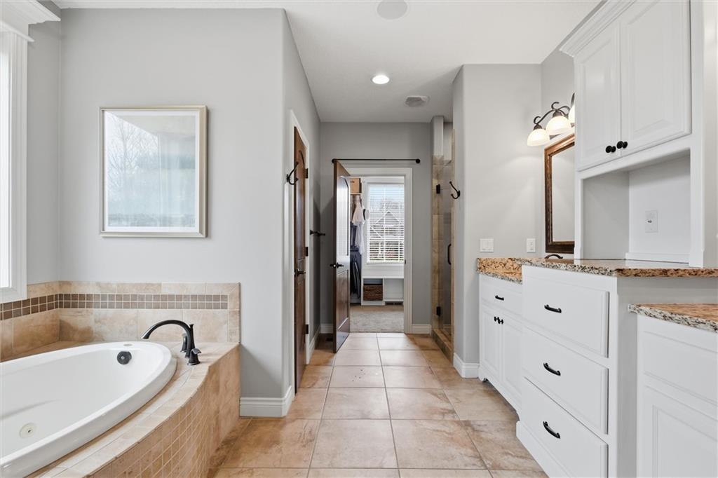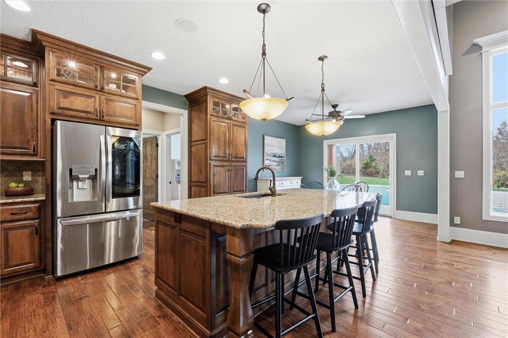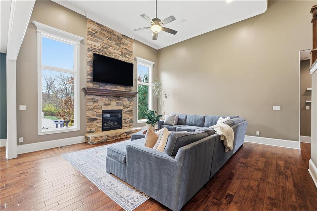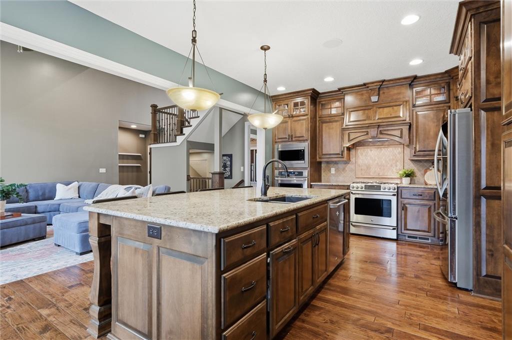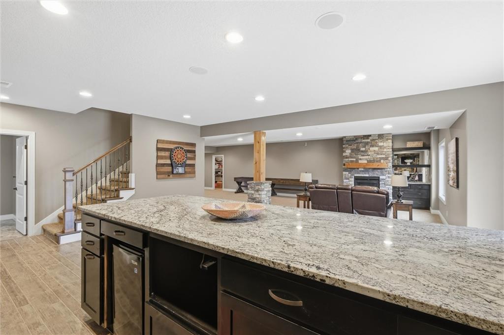 1.5 Story Home features backyard oasis with pool, fire pit and outdoor cooking area! It's time to truly LOVE where you live! Step inside this gorgeous home with vaulted ceilings, stone fireplace, hardwood floors, eat-in kitchen, granite countertops, stainless steel appliances to include gas range & double oven. Massive mudroom with utility sink and drop zone. Main level dedicated office or guest room. Primary bedroom with jetted tub, tiled shower, walk-in closet. Finished lower level walk-out with custom bar, movie theatre, stone fireplace. Second level provides generously sized bedrooms, one with private bath and the other two with jack and jill shared bath. Home backs to trees and is located on a cul-de-sac. Upgraded landscaping provides the perfect amount of privacy to enjoy your resort style backyard!
