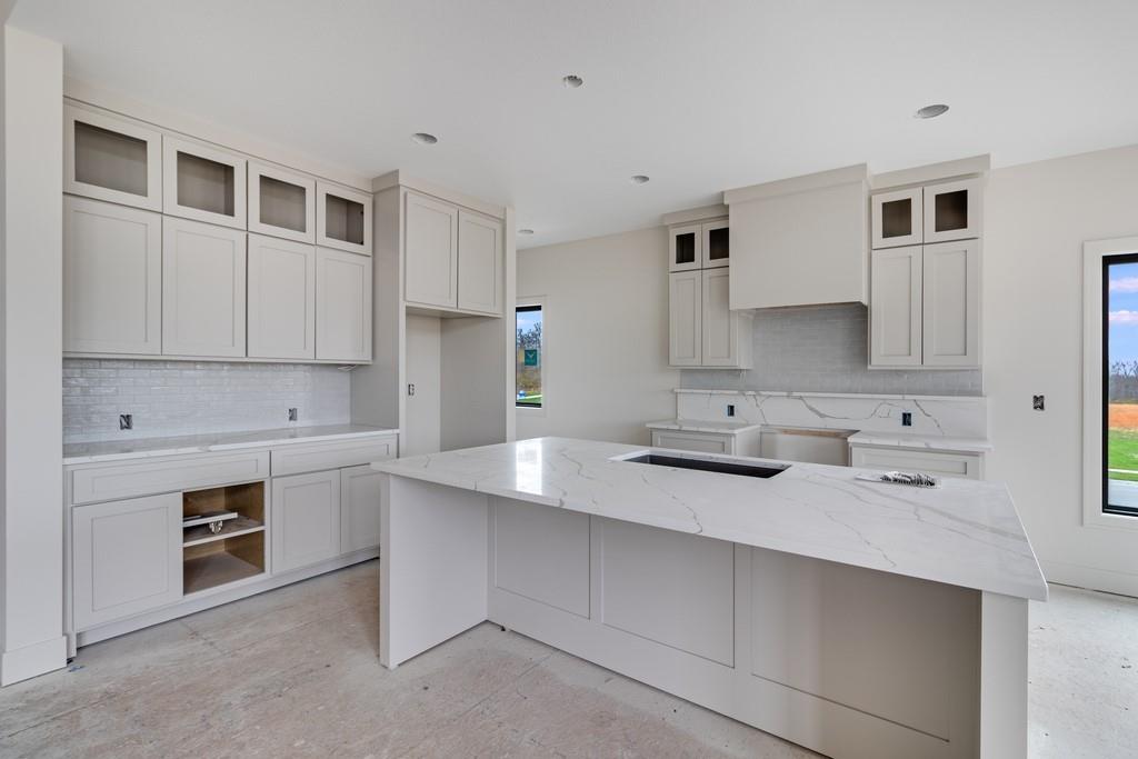 Discover the perfect blend of luxury, function, and craftsmanship in this stunning reverse 1.5-story home by Worley Construction, located on just under a 1/2-acre lot in The Estates at Knoll Creek, a premier Raymore community with a walking trail and a neighborhood fishing pond. This thoughtfully designed home offers 4 bedrooms, 3 bathrooms, and 2,787 finished square feet filled with custom finishes and quality materials. The open-concept main level features hardwood floors, a spacious great room with a stone fireplace, and a gourmet kitchen with quartz countertops, custom cabinetry, a wood vent hood, and a walk-in prep pantry. The primary suite includes a spa-like bath with a huge walk-in tiled shower, dual vanities, and a generous walk-in closet that connects directly to the laundry room. The finished walkout lower level adds two more bedrooms, a full bath, a large rec room with a wet bar, and a rare bonus: a basement garage bay, ideal for storing lawn equipment, tools, or creating the perfect workshop or hobby space. Enjoy outdoor living on the covered composite deck. With upscale design, flexible living spaces, and a quiet, scenic neighborhood, this home offers the lifestyle today’s buyers are looking for.