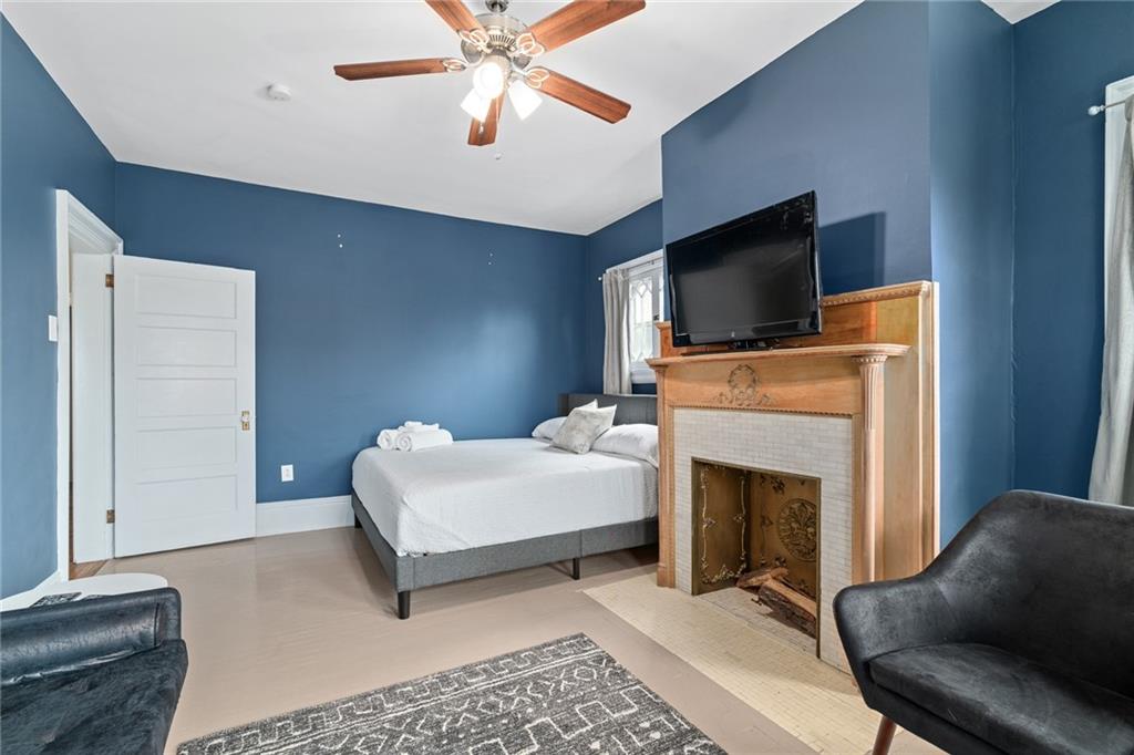 The one! Here is your chance for luxury, comfort, space, and charm all rolled into one ROCK SOLID property in the heart of KC. Own a slice of Kansas City's history which happens to be walkable to Plaza, Westport, the Art Institute, the Nelson Adkins Museum, Streetcar, Midtown Market, and so much more. This home has a healthy mix of traditional and modern luxuries such as original woodwork + working radiators juxtaposed by new kitchens + baths with updated plumbing and heated floors. Seamless living for the whole family. The butler's staircase was converted to the 'yellow submarine' half bath off the kitchen and a large storage closet on the landing. The kitchen boasts concrete counter tops, a double farm sink, a second drink bar with a copper countertop, 2nd sink, ice maker, and a mini fridge. The walk-in pantry connects the kitchen to the dining room or you can use the original double swinging door. Enjoy new and original windows throughout since the beautiful leaded windows have been expertly sealed with storms to preserve them. OH WAIT, there is more! Don't miss the large all season's room, grilling deck, covered carport, basement speakeasy, second floor sunroom/office, original clawfoot tub, walk-in closets, new stair/hall carpet AND the BONUS 3rd floor studio apartment (added income potential)! The home has been SO lovingly maintained and upgraded (ask about the efficient HVAC setup) that you will not want to leave. The front yard has the ultimate wrap around front porch overlooking the stunning magnolia tree that blooms with pink and white flowers twice per year. The basketball goal, professional landscaping, and private driveway (up to 9 cars) are also sure to please. This big blue home is the perfect place to host an elegant event or hunker down to raise your babies with ultimate versatility. It is a sound structure that was built to last another hundred years. Don't miss out! Tour today and experience this delightful home with a location that can't be beat!