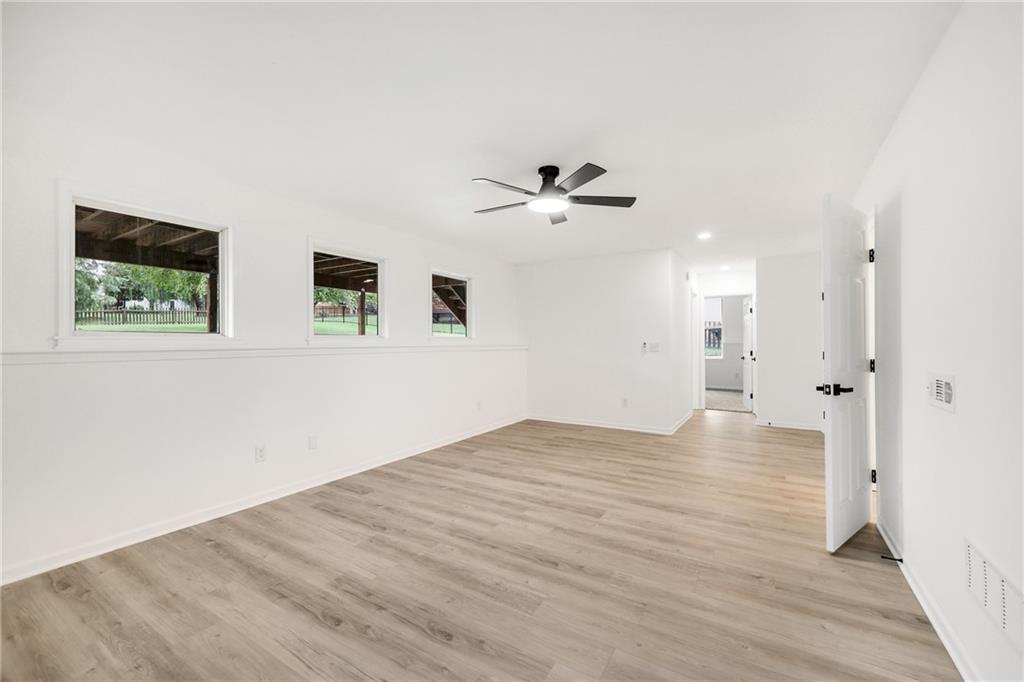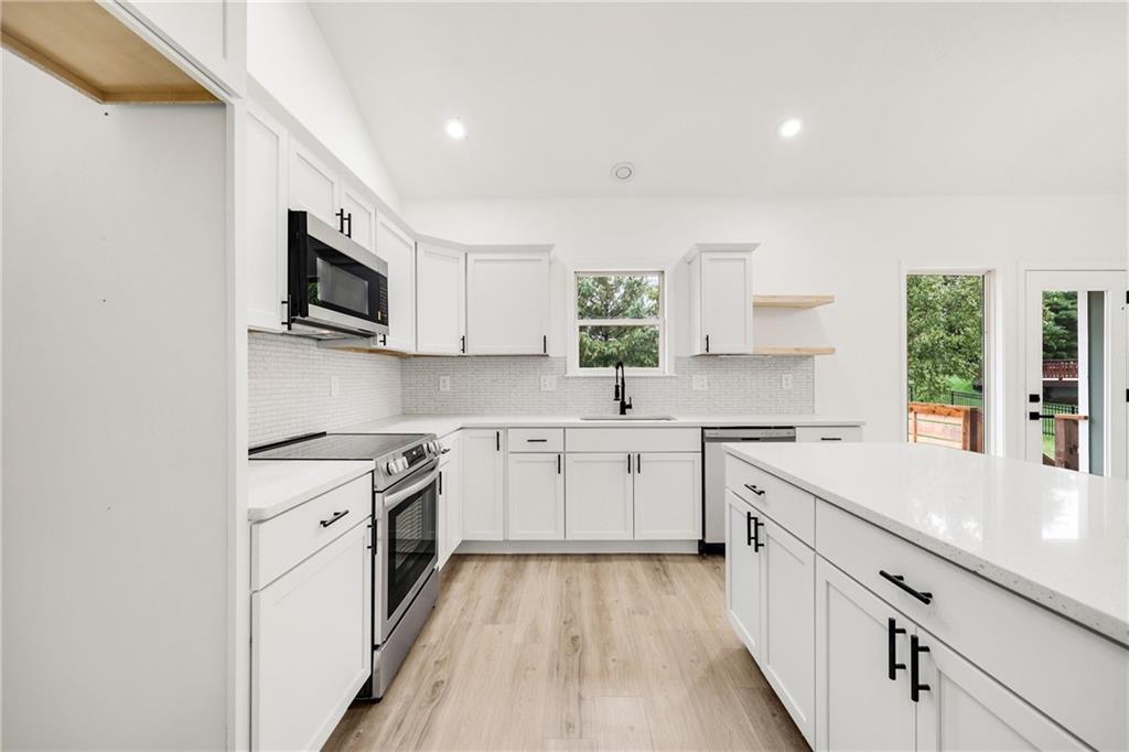 Move right into this stunning remodel offering a crisp remodel throughout. This home catches you from the curb offering a nice flat lot, gorgeous mature trees, and a quiet street. The floorplan is lovely offering multiple living areas. The entry is spacious offering 2 story ceilings, living room with modern ceiling fan, LVT flooring, fresh paint and opens to the kitchen. The kitchen offers a total remodel with gorgeous white cabinets, quartz countertops, stainless steel appliances including new dishwasher, smooth top stove, built-in microwave, and an abundance of cabinet storage space. The kitchen opens to the gorgeous new deck overlooking the awesome backyard. The bedrooms are all spacious offering new finishes. The master suite offers an incredible ensuite master bathroom with double sink vanity, new modern mirrors and lighting, freestanding soaker tub, walk-in shower, and all new hardware. The secondary bedrooms share a hall bathroom offering shower/bathtub combination, new tile, fixtures, modern vanity, lighting, and crisp finishes. Do not miss the convenient washer dryer closet in the hall. The lower level is a dream offering fireplace, ceiling fan, wall of daylight windows, walks out to the backyard and offers a private 4th bedroom, full bathroom offering walk-in shower, cool new vanity, and crisp neutral tile. The sub-basement is amazing offering additional finished space for clean storage or any flex spaces you might need. Do not miss the sprawling backyard ready for your personal touch. So many goodies in this house including all new interior and exterior paint, new deck, all new lighting and fixutres and more! This house is minutes from the airport, shopping and more. Do not pass this by!