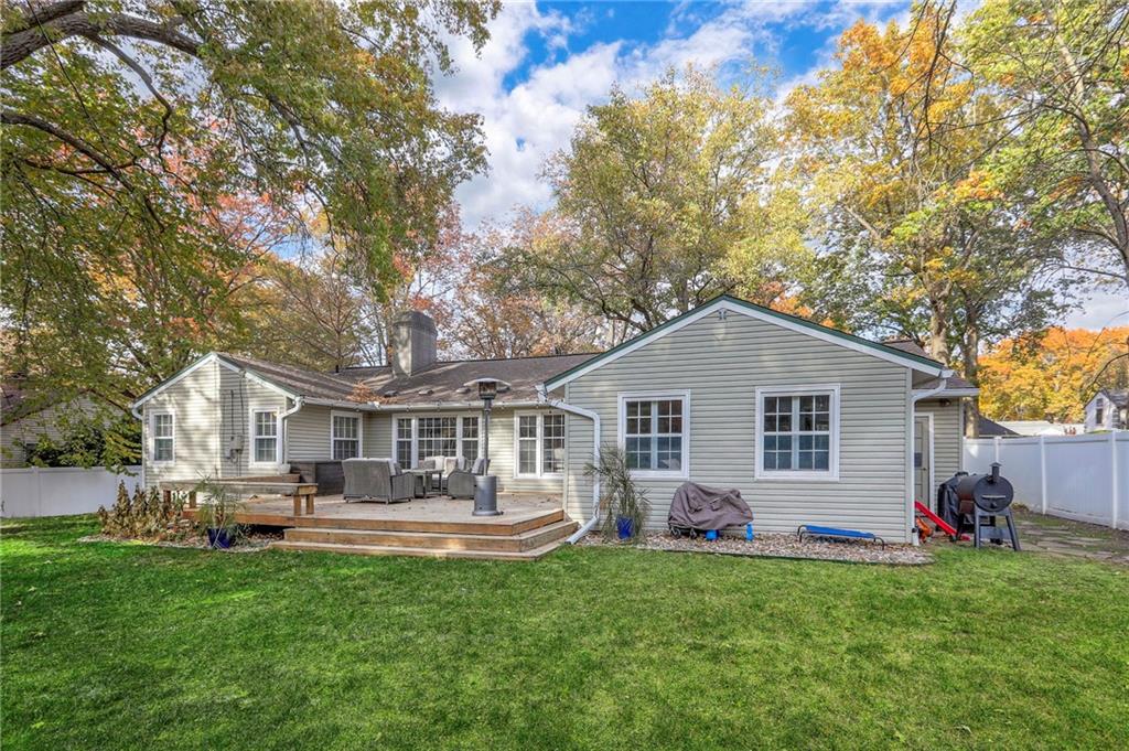 Updated and timeless ranch in the coveted Romanelli West neighborhood welcomes you home to one level living! Nestled on a tree-lined, flat lot, this open concept 3 bed, 2 bath home boasts the space you've been looking for with potential for so much more. Kitchen flows into light-filled living and dining room with vaulted ceilings. Bonus family room on the back of the house gives you more hangout space, leading 2 expansive back deck and attached 2 car garage. 3 bedrooms, including a primary suite, sit on the western side of the home. Enormous basement plumbed for bath awaits your finishing touches. Enjoy your spacious back deck with privacy fence - room to play and room to grow. Newer HVAC and water heater. Structural inspection completed and recommended work done!