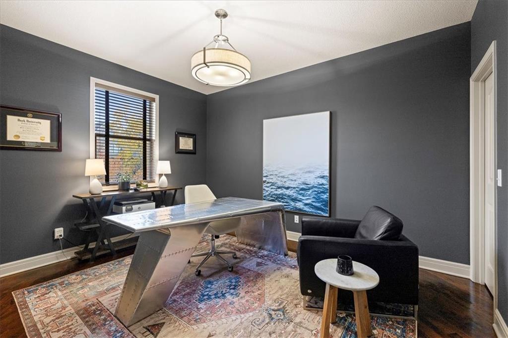 Welcome Home to Wilshire Farms! Step into this sophisticated former model home in the highly sought-after Wilshire Farms community! The main level layout is ideal for both everyday living and entertaining, featuring a spacious kitchen, multiple dining areas, and inviting living spaces. Designer lighting accents the home beautifully, adding style and warmth around every turn. Enjoy the convenience of a private home office and a main-level bedroom, perfect for guests or flexible living. Out back, a newer screened-in deck creates the perfect spot to relax and enjoy crisp fall evenings. Upstairs, you’ll find three generous secondary bedrooms with two full baths, plus the primary suite oasis complete with abundant natural light, a spa-like bath, and plenty of space to unwind. If the top two floors don’t already impress, the finished walk-out basement will! With a large media area, game space, and full bar, it’s ready for hosting the big game or a cozy movie night. Additional highlights include custom blinds, a brand-new roof, and newer furnace and A/C. Enjoy all that Wilshire Farms has to offer, neighborhood pool, tennis, basketball, and volleyball court just steps from your door. Don’t wait, make this exceptional home yours before the holidays!