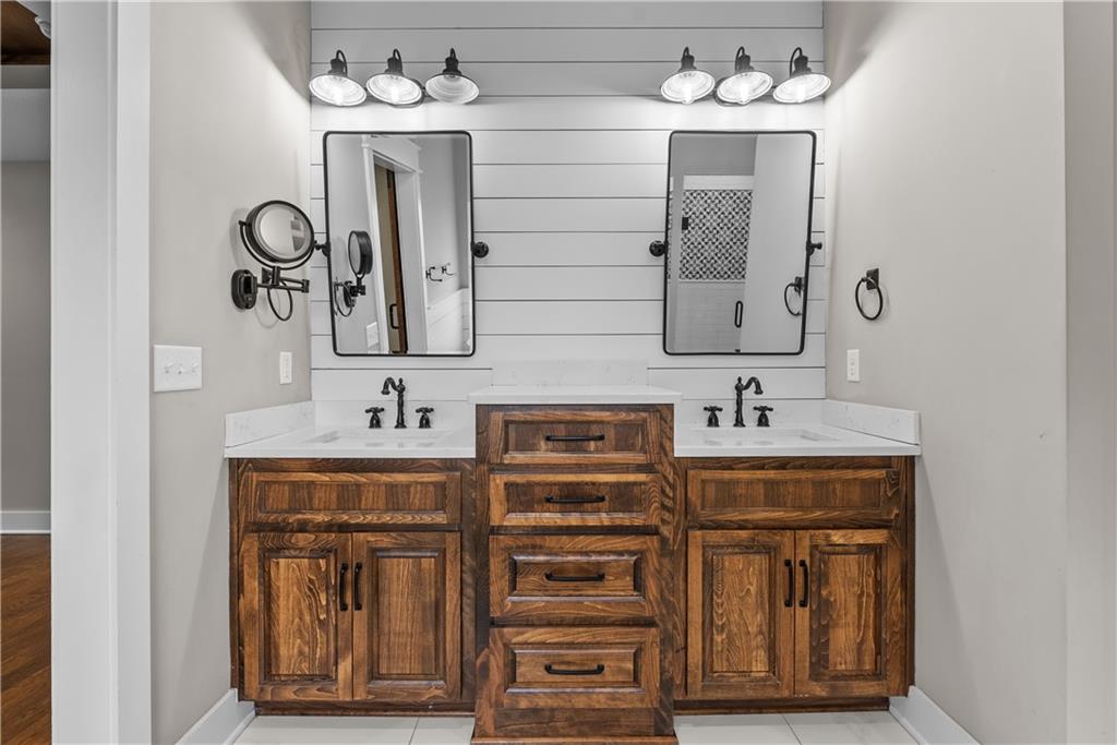 Stunning Modern Farmhouse situated on just over 1 Acre in the coveted Shadow Glen Subdivision. This Gorgeous 1.5 Story home highlights High-End finishes along with an open floorplan that is perfect for Entertaining! As you enter the home you are welcomed by gleaming hardwood floors thru-out and vaulted ceilings. The Great Room boasts a beautiful Stone Fireplace (wood burning), wood beams and floor-to-ceiling windows! Gourmet Kitchen features an oversized Island, custom cabinetry, granite Counters, Gas range + Double oven, Coffee bar & Large Walk-in Pantry. Just off the kitchen is the Screened-in Deck overlooking the peaceful fenced-in yard backing to trees and greenspace! Spacious Main Floor Master Suite boasts jaw dropping Ensuite Bath and Large Walk-in closet. Main level also highlights Formal dining room, 2nd Bedroom + Full Bath and Laundry Room. Upper Level offers 3 Bedrooms, Full Bath and the possibility to finish living space over the garage. Daylight lower level offers bountiful storage or the opportunity for future finish & stubbed for a Full Bath and Safe room under the front porch...so many possibilities! Enjoy catching sunrises and sunsets on the Large front porch or out back on the back patio. Additional features include an In-ground sprinkler system, 2 HWH, Security system & Expandable attic! Home is a Must See!