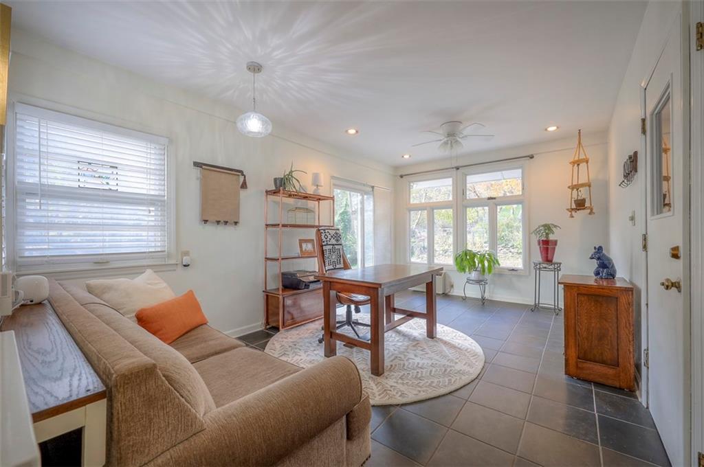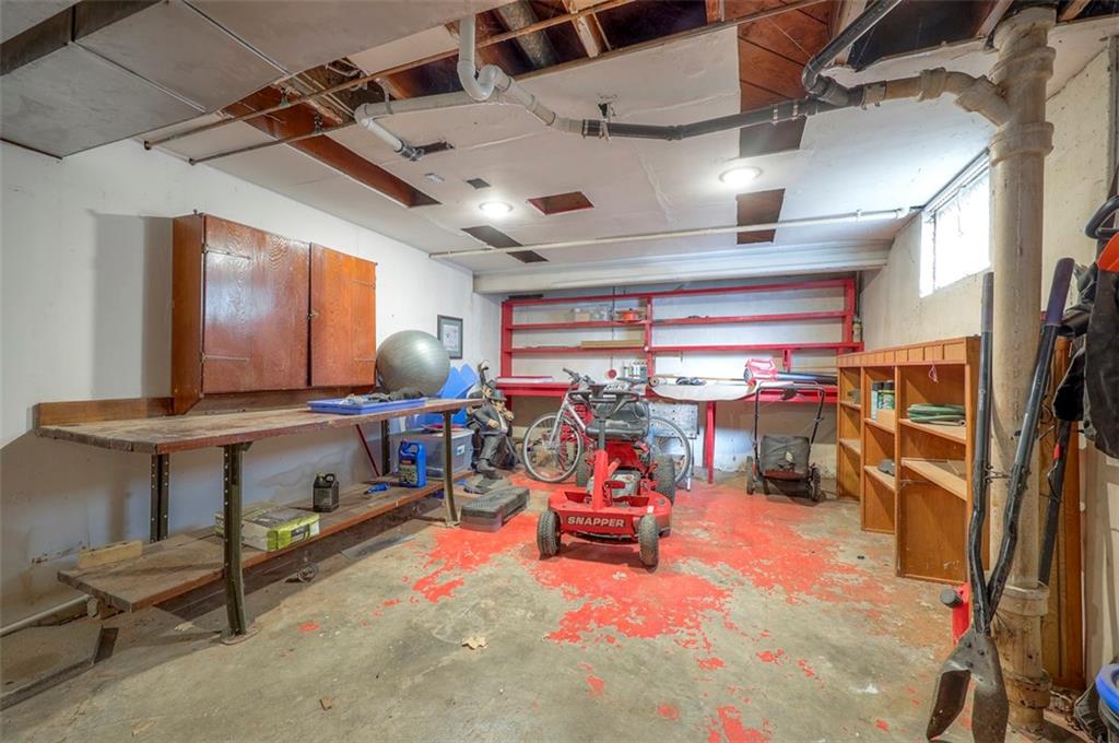 This home has had several updates by the current owner such as quartz counters in the kitchen and added a dishwasher and microwave and refrigerator that stays. The bathroom on the main floor has also been updated and the main floor has all wood floors throughout! The large sunroom with large windows off of the kitchen is a perfect gathering place in the summer or to watch snowing in the winter with a large slider opening to the fenced yard! The HV/AC was replaced just two years ago and the roof was replaced just eight years ago. The one car garage that faces the front has a double wide driveway for parking and on the side of the house there is another driveway that leads to the second garage. An oversize workshop is in the basement next to the garage entrance. The outside of the home does have some peeling paint and is being sold in that condition.