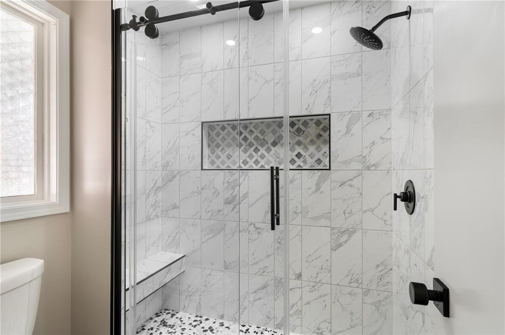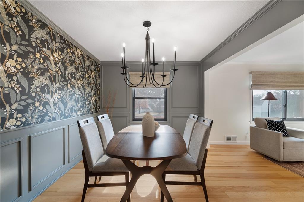 Stunning ranch/1.5 story in sought after Pinehurst subdivision. Welcome to this 5bd/3.1ba/2 car garage main level living home nestled on a quiet cul-de-sac. Light, bright and ah-mazing! Sitting on over a 1/2 acre lot, this park-like property is perfect for quiet family nights or loud exciting gatherings w/friends. Step inside to new engineered wood floors (gorgeous) in entry, formal living and dining room, family room and hallway to bedrooms! New carpet in all bedrooms (no animals or shoes have walked on the carpets:); staircase features designer carpet leading up to 2nd level adding a touch of luxury to the home's updated style. New interior/exterior paint, new Renewal by Anderson windows on front of house (adds so much natural light), new windows in family room, new light fixtures, new canned lights in family room, textured ceilings thru-out (not popcorn!) and gorgeous gas fireplace. Kitchen boasts granite counters, stainless steel appliances, double oven, and eat-in area. Elegant master ensuite w/sliding door, remodeled shower and new gorgeous vanity; laundry room, two generous-sized bedrooms on main level and hall bath complete the main level. Upstairs you'll find two large bedrooms w/walk-in closets and jack and jill bath, perfect for guest bedrooms, office, craft room, play room all overlooking the gorgeous backyard park! This home continues to impress w/epoxy-coated floors in lower level recreation room and new half bath. Tons of storage in lower level. Two car garage has epoxy-coated floor, too! Easy access to highways, close to award-winning Shawnee Mission schools, shopping, restaurants and more! See it before it's gone. **All information deem reliable but not guaranteed. Buyer and buyer's agent to verify all information, including measurements, during inspection period.**