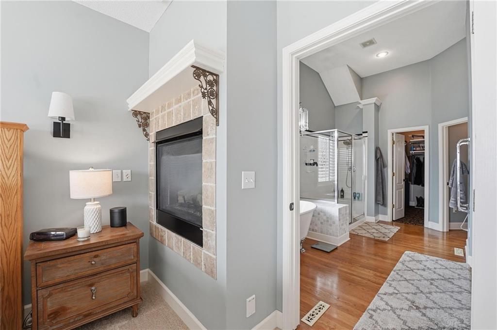 Experience luxury living on a premium golf course lot with stunning views from both the front and back of the home. Sit on your front porch watching golfers roll in, or unwind on the back deck as they make their way across the 6th hole, this home places you right in the heart of golf course living. The main level features a formal living and dining room, a warm hearth room, and a spacious kitchen equipped with a pantry, center island, granite counter tops, custom cabinets, double ovens, and a gas range. The casual dining space offers beautiful views overlooking the fairway. The primary suite is a true retreat with a see-through fireplace, elegant claw-foot soaking tub, walk-in shower, double vanity, and a large walk-in closet. The finished lower level is designed for entertaining and everyday living, offering a generous family area, game room, bar, two additional bedrooms, a full bath, and a half bath. Outdoor living shines with new gorgeous landscaping, a large deck overlooking the 6th hole, and even a small view of the lake! This home is perfect for gatherings or quiet evenings at home. Additional features include a 7x6 cedar closet, 15x13 storage room, inviting 19x7 front porch, 15x10 patio, two-tier deck spaces (30x14 and 27x6), and an oversized 29x21 garage. Located in the highly sought-after Creekmoor community, residents enjoy access to a premier 18-hole golf course, a 108 acre lake for boating and fishing, a family friendly clubhouse with casual dining, licensed bar & grill, outdoor patio, pro shop, fully equipped fitness center, weight room, zero entry swimming pool with lap lanes, tennis courts, and miles of walking and biking trails.