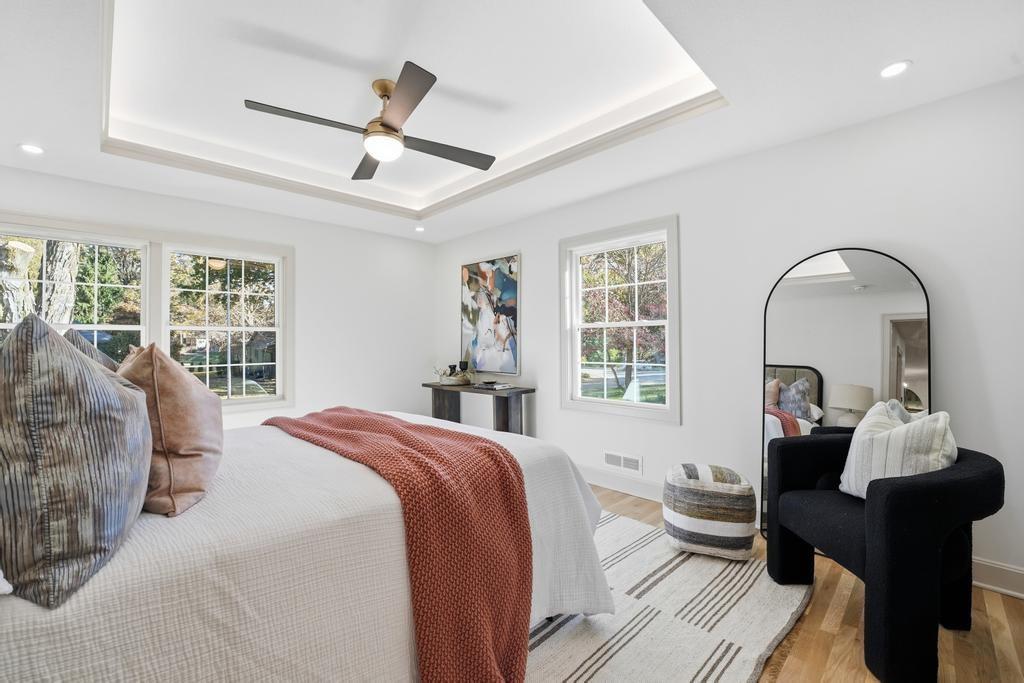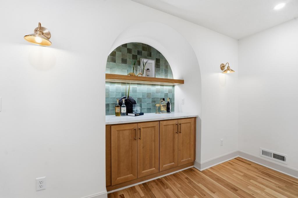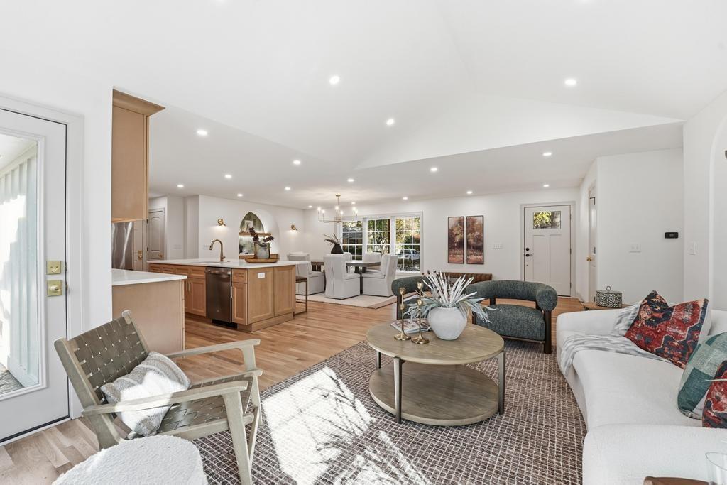 ABSOLUTELY STUNNING REMODELED RANCH IN THE HEART OF LEAWOOD! This beautifully reimagined 4-bedroom, 3-bath home perfectly blends timeless charm with sophisticated modern design. Step inside to an inviting open-concept layout featuring gleaming refinished hardwood floors, designer lighting and high-end finishes throughout. The vaulted family room is filled with natural light and anchored by a cozy fireplace—ideal for gathering or relaxing. Show stopping kitchen will impress any chef with quartz countertops, custom cabinetry, walk-in pantry, stainless steel appliances and a large eat-in island perfect for entertaining. Seamlessly connected dining area with built-in dry bar makes hosting effortless! Retreat to the spacious primary suite boasting a walk-in closet with washer/dryer hook-ups and a luxurious spa-inspired bath with double vanity, soaking tub and walk-in shower. A second main-level bedroom and full bath offer flexibility for guests or a home office. Full, finished lower level expands your living space with a generous rec room, two additional bedrooms, a third full bath and ample storage. Enjoy outdoor living on the patio overlooking the beautifully landscaped backyard with access from the family room to easily move the party outdoors. Bonus feature includes an EV car charger in the attached garage. Located in a highly sought-after Leawood neighborhood near parks, top-rated schools, premier shopping and dining. Move-in ready, meticulously updated and absolutely stunning—WELCOME HOME!