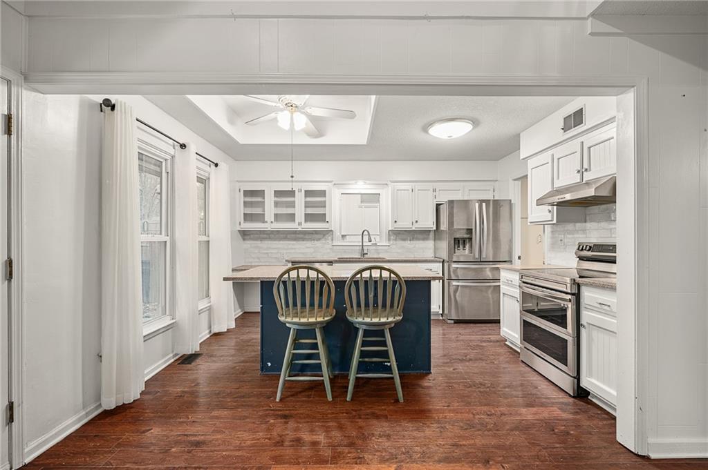 Welcome to 715 NE Cambridge Drive — where comfort, community, and charm meet. This beautifully updated 4-bed, 2-bath home sits in one of Lee’s Summit’s most beloved neighborhoods — a place where summer afternoons at the neighborhood pool turn into memories shared by families that become friends. Inside, you’ll love the bright, open feel and thoughtful updates throughout. The kitchen was completely refreshed with crisp white cabinetry, a new tile backsplash that ties in perfectly with the white-and-gray tones of the living room fireplace, and a double-oven stove with hood — ideal for anyone who loves to cook or entertain. The natural light throughout the home is exceptional, especially in the afternoons when the upstairs windows flood the loft and living room with sunshine. The spacious utility room just off the kitchen is a standout feature — offering extra cabinet storage, space for a full-size washer and dryer, a large deep freezer, and still room left over for storage or even a pet’s favorite spot. Additional updates include a French drain added along the back and side of the home for peace of mind. Whether you’re drawn to the sense of community, the bright and inviting living spaces, or the beautifully updated kitchen, this home offers a place where you can settle in.