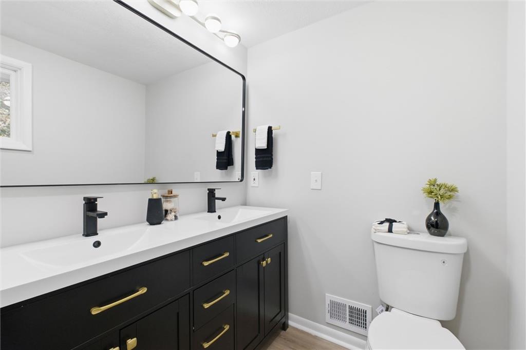 Welcome to this beautifully updated 4 Bedroom, 3 Bathroom side-to-side split that perfectly blends classic structure with contemporary style. This home has been thoughtfully and cosmetically updated throughout, offering a fresh, move-in-ready experience! A see through brick fireplace provides warmth in the spacious living room and dining/kitchen combo. New finishes, updated countertops and stainless steel appliances make cooking and entertaining a breeze. All three bathrooms have been updated with fresh fixtures, vanities, and finishes. The versatile lower level features a cozy recreation/family room that walks out to the backyard, along with a full bathroom and the fourth bedroom—ideal for a private guest suite or home office. This home offers easy access to local amenities, major highways, shopping, and dining. Don't miss the opportunity to own this fantastic property! Schedule a showing TODAY!