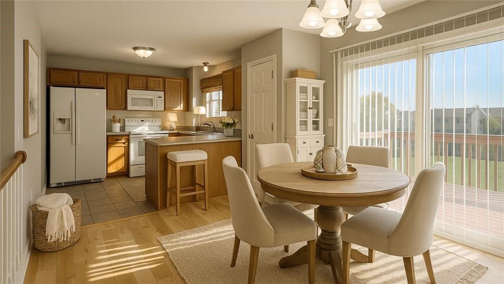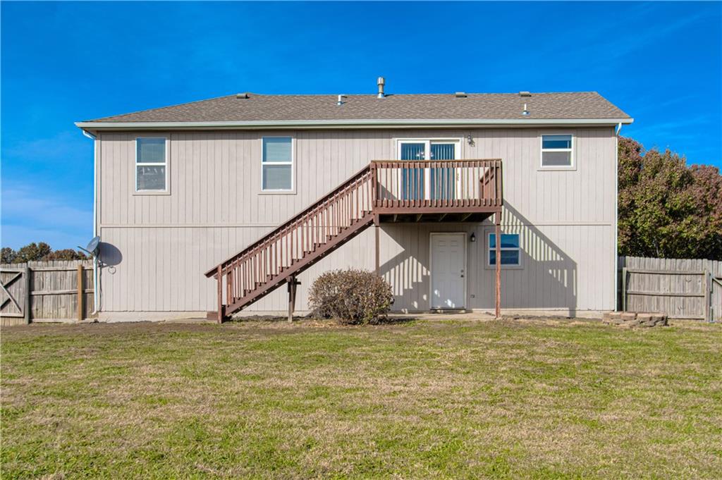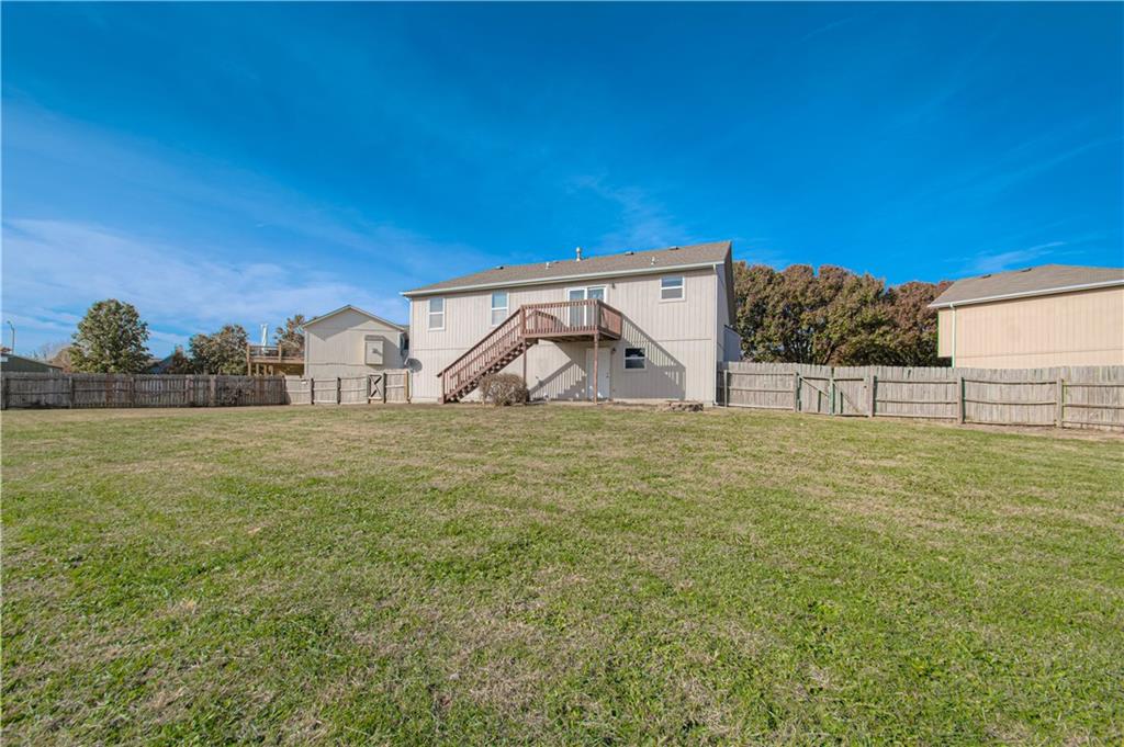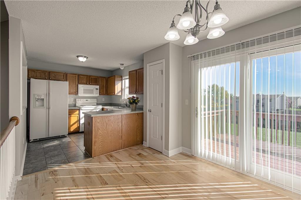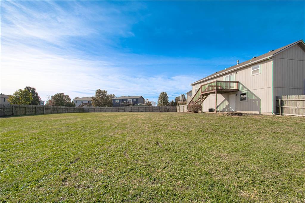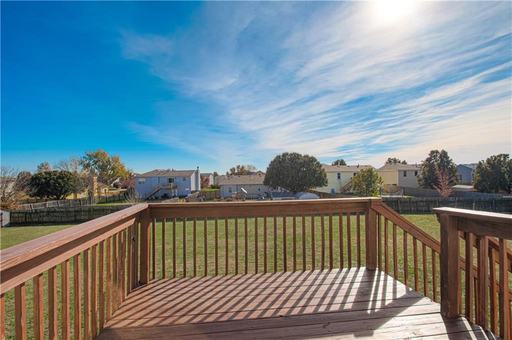 WOW~ Step inside this adorable 3-bedroom, 2-bath home! Instantly feel the warmth and care throughout. The light-filled great room welcomes you with gleaming refinished wood floors and a cozy gas fireplace — the perfect spot for relaxing or entertaining on cool Kansas evenings. The open layout flows seamlessly into the dining area and the spacious kitchen, featuring a functional U-shaped design, abundant counter space, abundant of cabinetry, and a pantry for all your storage needs. Whether you’re hosting family dinners or enjoying a quiet morning coffee, this kitchen is designed for both comfort and plenty of space. Your primary suite offers a peaceful retreat with dual closets and a private bath featuring double vanities and a private soaking tub — perfect for winding down after a long day. Outside, you’ll fall in love with the incredible backyard — absolutely huge backyard for everyone to enjoy! There’s room for kids to play, pets to run, and gatherings under the stars - even with a fire pit. The large deck overlooks the expansive yard, with a patio below for extra entertaining space off the walk-out lower level. This home has it all: charm, modern updates, and a layout that fits today’s lifestyle — HURRY to see this adorable home! Some photos are virtually staged!