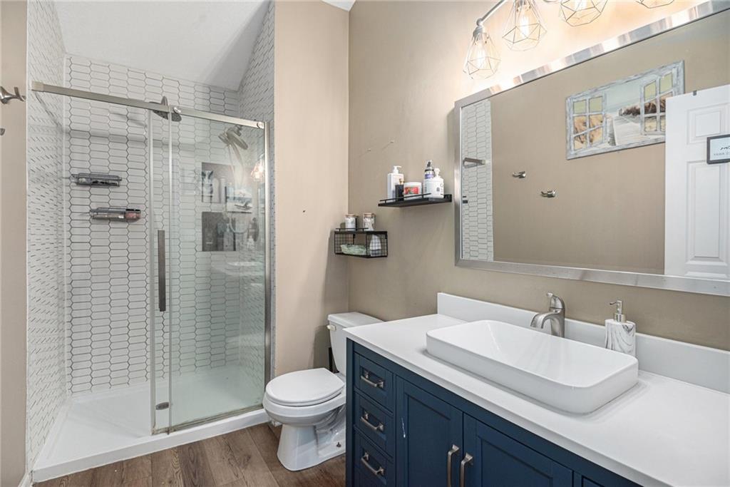 Welcome home! Well maintained split entry located on a peaceful lot backing to green space at just over an acre! Front porch offering curb appeal and charm. Walk into the cozy living room space with a vaulted ceiling and floor to ceiling stone fireplace. Upstairs is the kitchen/dining room combo with wood floors and plenty of cabinet space. Right down the hall is the primary suite with a newly updated bathroom and two additional bedrooms with a hall bath. Finished basement downstairs with a half bath and additional storage space. Come check it out!