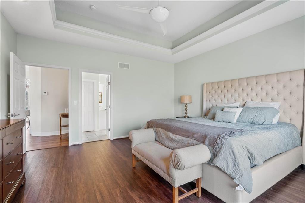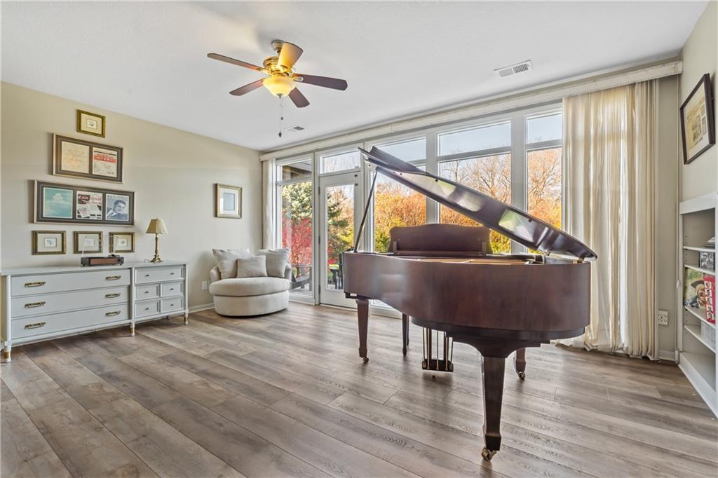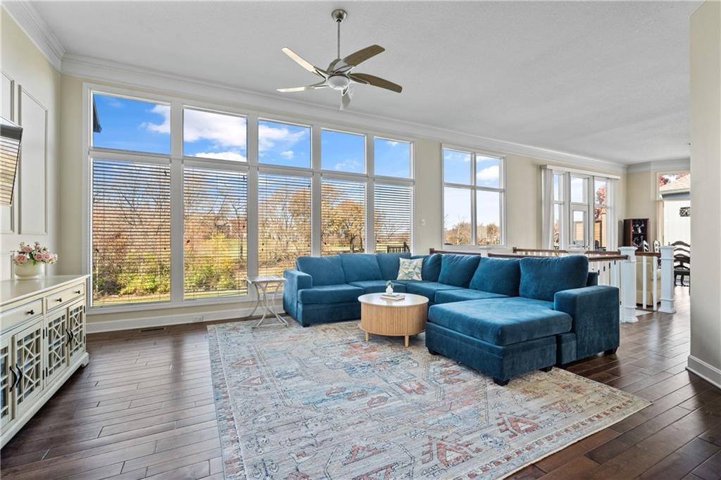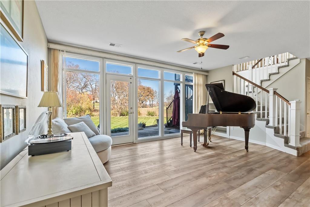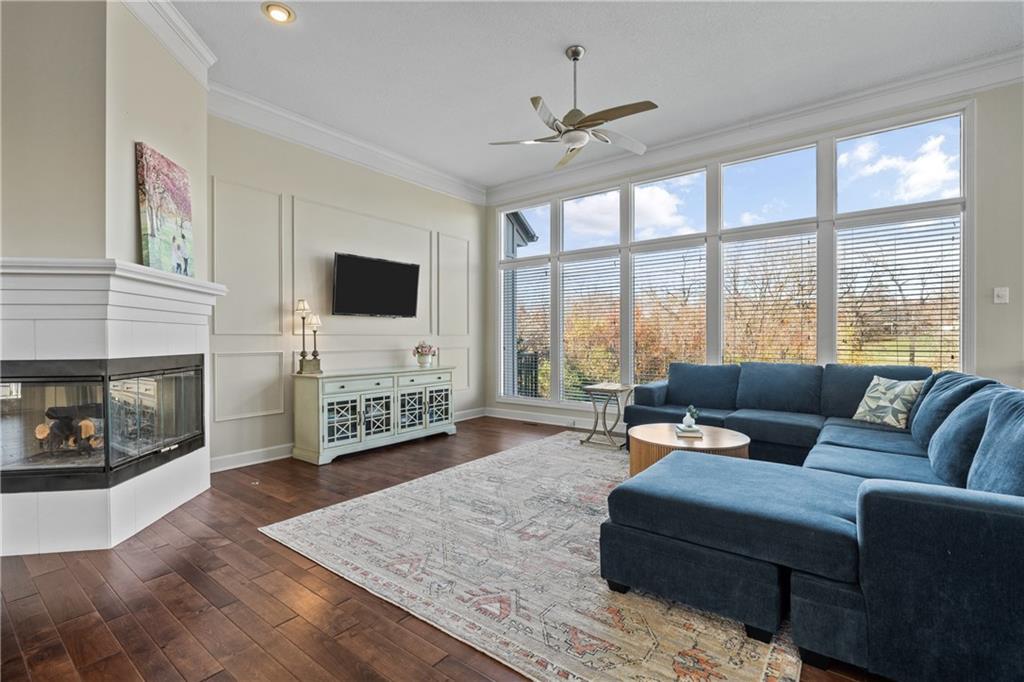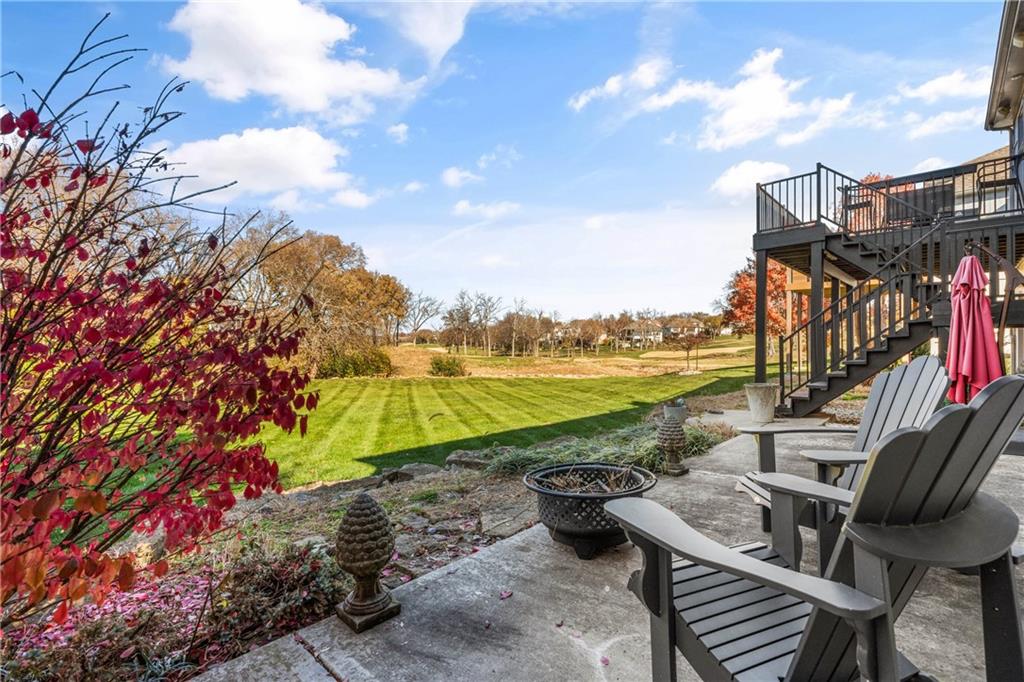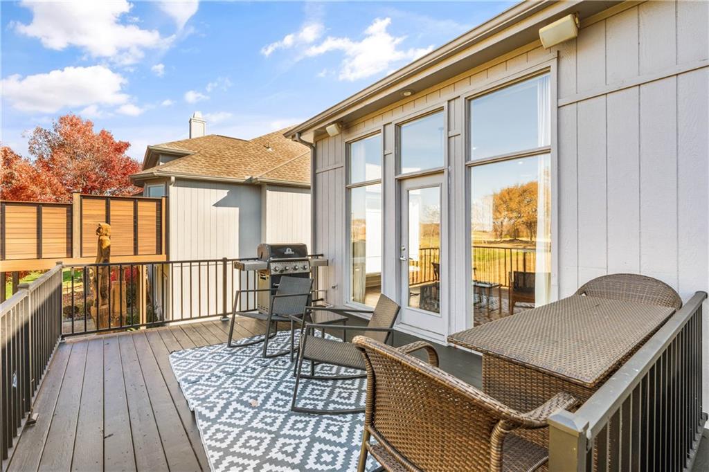 Experience luxury living in this beautifully designed reverse 1.5, perfectly positioned on one of Falcon Ridge’s most coveted golf course lots. Tucked into a quiet cul-de-sac—yet just a short walk to the Falcon Ridge clubhouse, pool, and tennis/pickleball courts—this home pairs privacy with unbeatable convenience. The setting is truly special: the home sits comfortably back from the 10th hole, creating an uncommon sense of space while still capturing wide-open, spectacular golf course views from nearly every angle. Multiple outdoor living areas make the most of the scenery. Enjoy peaceful mornings on the private martini deck or take in striking sunset skies from the kitchen-level deck—each spot offering its own vantage point of the rolling fairways. Inside, the main floor is bright, welcoming, and thoughtfully arranged. A cozy library/office with custom built-ins and a window seat sets the tone, and an elegant dining room opens into a spacious living area connected to the updated kitchen and breakfast room. The primary suite occupies its own quiet wing and includes direct deck access along with a freshly updated, spa-inspired bathroom. The walkout lower level is made for entertaining and everyday enjoyment. A built-in bar serves the large second living area, which opens to a generous patio overlooking the expansive yard and golf course. Three bedrooms complete this level—including an oversized flex room that can serve as a gym, recreation room, media space, or comfortable guest suite. With its rare setting, stunning views, and a layout that embraces both comfort and style, this home offers an exceptional lifestyle in the maintenance-provided Falcon Ridge Villas.