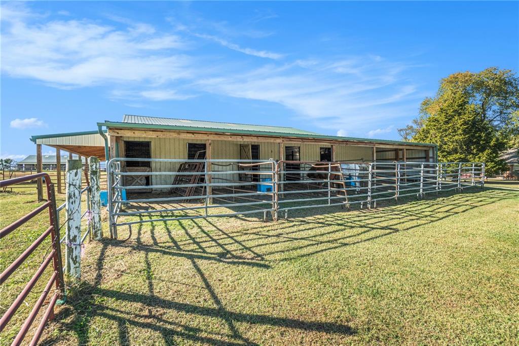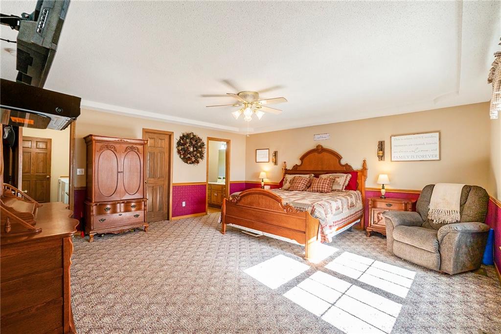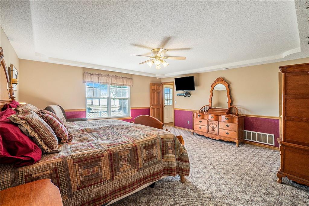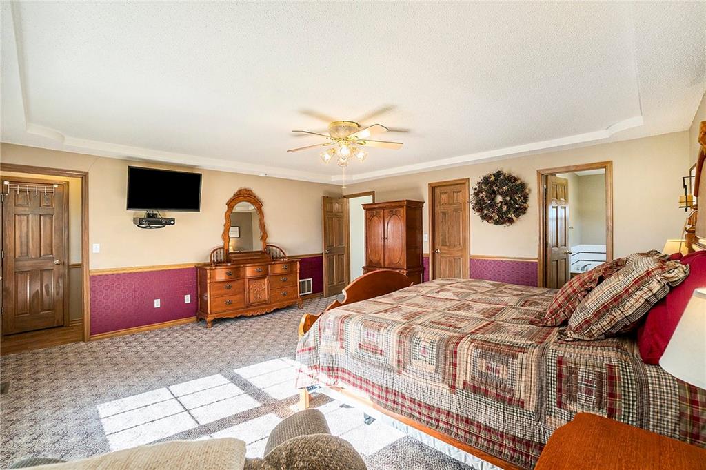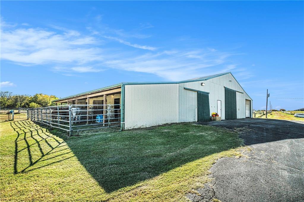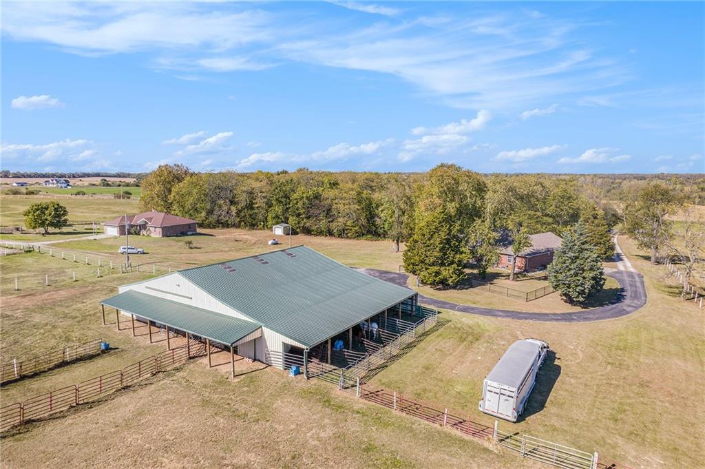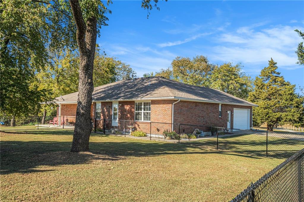 Experience the perfect blend of comfort, function, and country living at 22543 Dempsey Road in Leavenworth, Kansas. Situated on 19.27 acres along a blacktop road, this beautifully maintained brick home offers over 4000 square feet of living space designed for both everyday living and entertaining. Inside, you’ll find three bedrooms and two bathrooms on the main level, including a spacious primary suite. The open kitchen features generous counter space, an eat-in area, and flows naturally into a formal dining space and living room, creating a warm, inviting atmosphere. Downstairs, the finished walk-up basement includes three non-conforming bedrooms, a full bath, and its own private entrance — perfect for a guest suite, multigenerational living, or home office. Step outside to enjoy mature trees, a shaded backyard, and sweeping views of the surrounding countryside. The property is fully fenced and cross-fenced into multiple pastures, ideal for horses or livestock. The 60' x 86' barn includes five stalls with runs, a spacious storage area, and room for equipment or tack. A roping arena and small pond add to the functionality and beauty of this turnkey horse property. If you’ve been looking for a place that combines rural charm with modern amenities, this property delivers — space, privacy, and practicality all in one.