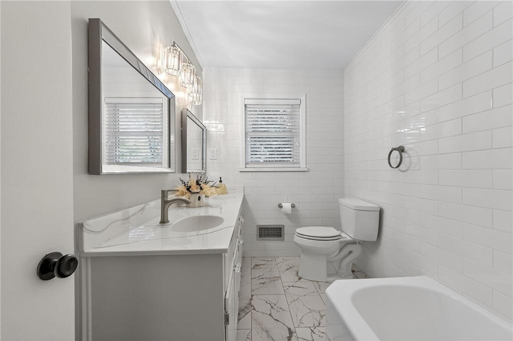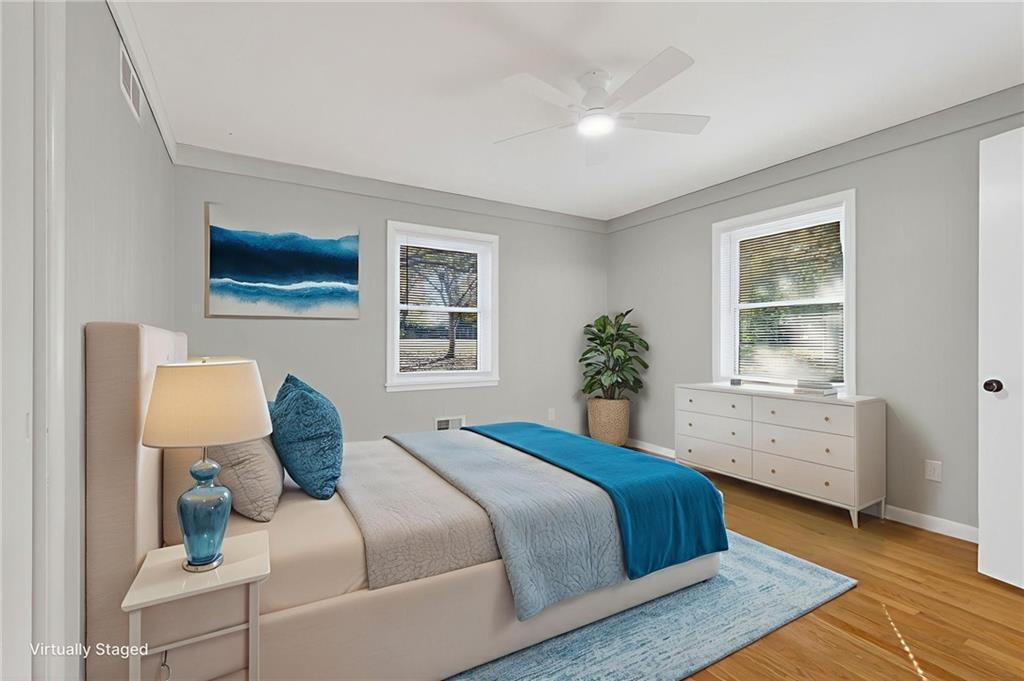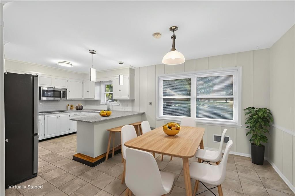 This spacious 3-bedroom 2-bath ranch has been updated and refreshed for move-in ready convenience. The hardwood floors have been newly refinished and gleam. Both bathrooms display new tile floors, walls & modern fixtures. Generous countertop space and ample kitchen cabinets provide plenty of room for meal prep, storing appliances, and setting up a lavish buffet when entertaining. Speaking of entertaining, the downstairs recreation room with a wet bar area is perfect for get-togethers or providing the kids a play space of their own, or a quiet study or office space. Drop laundry in the chute to the laundry area for added convenience.