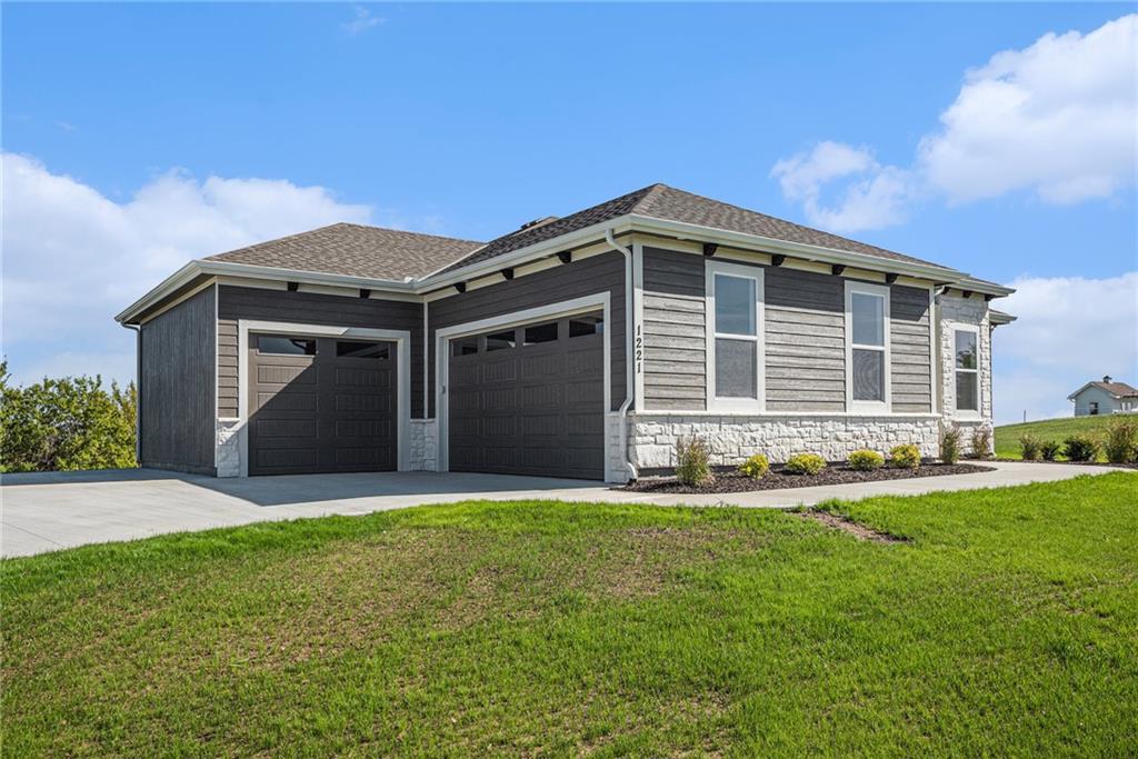 Stunning Reverse 1½ Story with Breathtaking Views! Perched atop a beautiful hill, this 4-bedroom, 3-bath home offers panoramic views from nearly every window—you can see for miles from the comfort of your living room or the covered deck! The open-concept layout is perfect for entertaining, featuring a spacious great room, dining area, and kitchen designed for both style and functionality. A unique garage pass-through door leads directly into the pantry, making grocery unloading effortless. The main-level primary suite includes double vanities, a walk-in shower, and a generous walk-in closet. Downstairs, the walk-out lower level expands your living space with a huge family room, wet bar/sink area, two additional bedrooms, a full bath, and abundant storage. Enjoy peaceful sunrises, tranquil evenings, and an easy flow that makes every day feel like a retreat. This home blends thoughtful design, modern comfort, and unmatched views—all in one exceptional package!