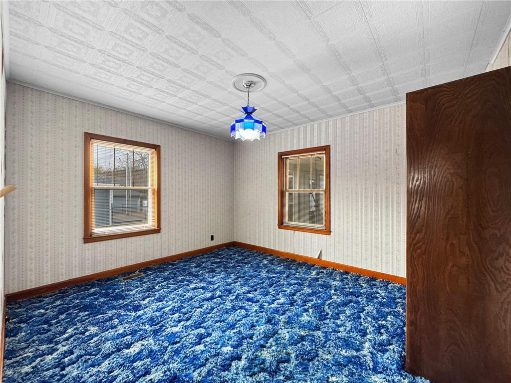 Bring your design ideas to enhance the beauty of the natural woodwork in this 3+ bedroom, 1 bath home. Living room and formal dining room are filled with light from large windows. Two bedrooms and full bath are on main level. Enclosed staircase leads up to second floor with large open room with storage in the side walls, and two smaller side rooms. Step outside from first floor laundry room to enclosed sunroom and a paved patio. Long driveway leads back to garage, providing plenty of parking for guests. Fenced side yard provides safe play area. Backyard has trees along the top of ridge which leads down to creek.