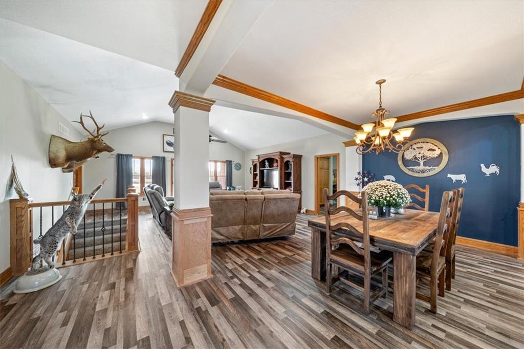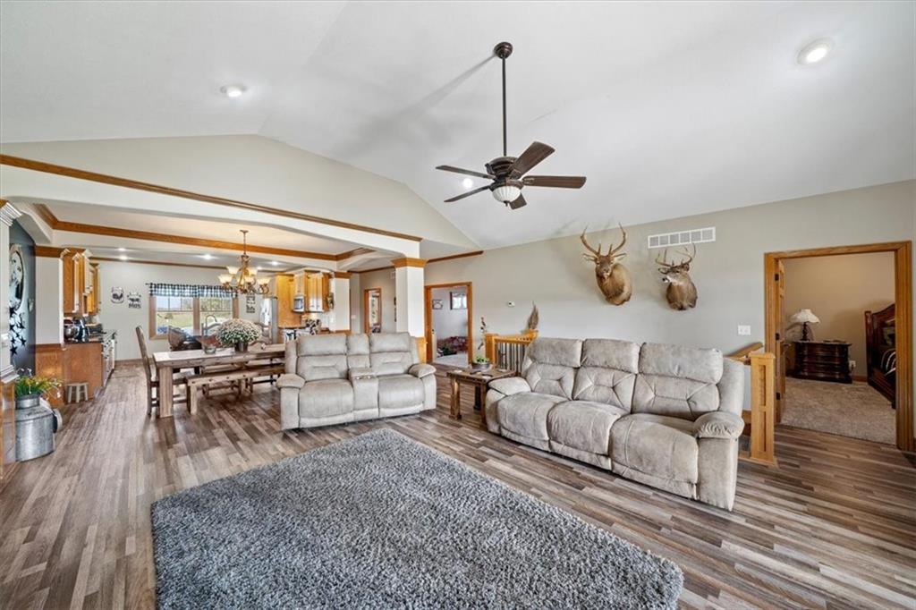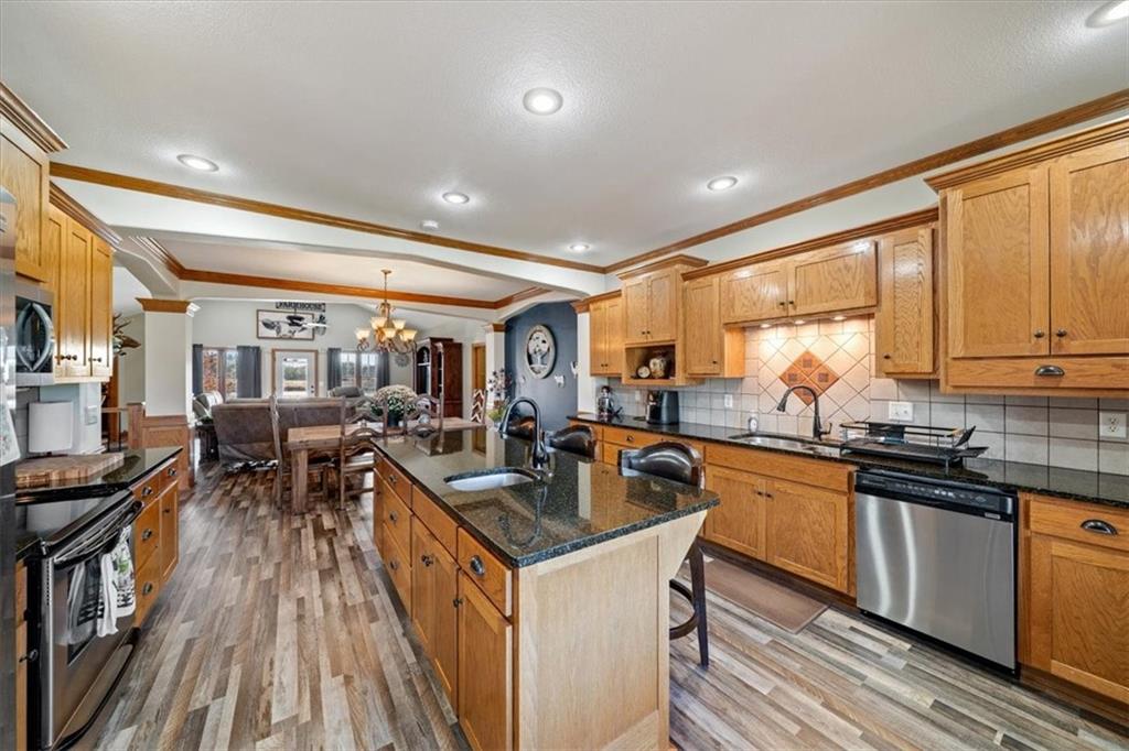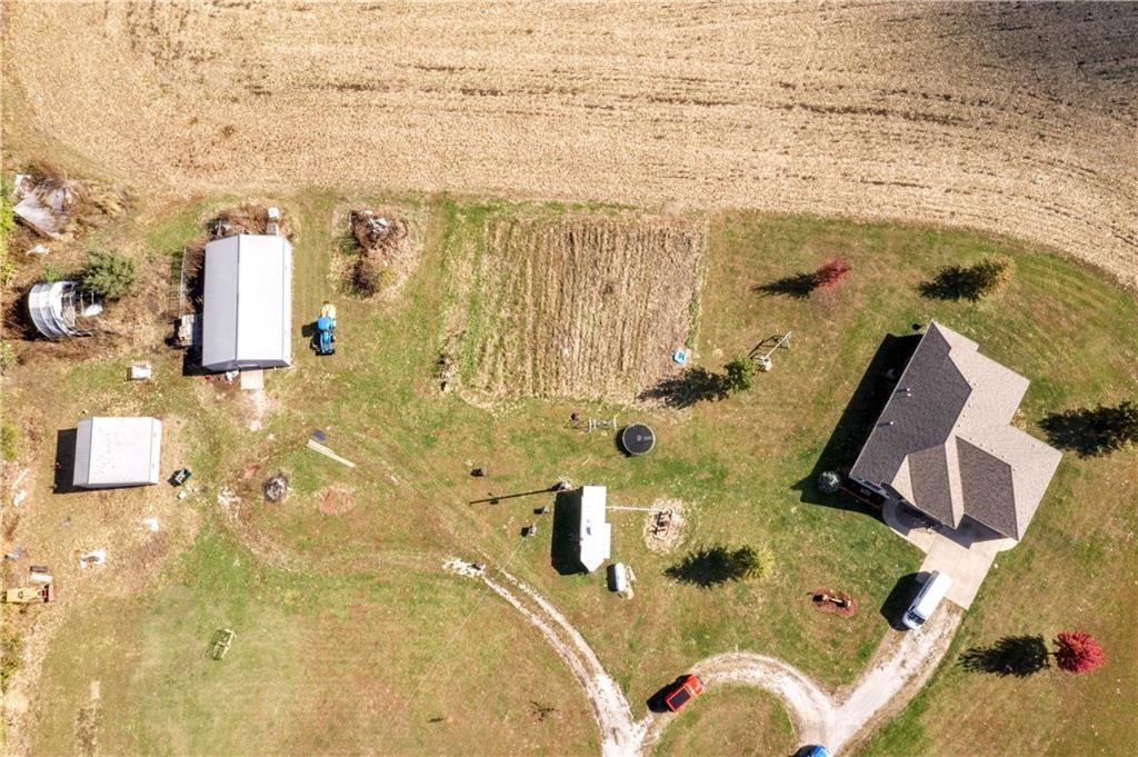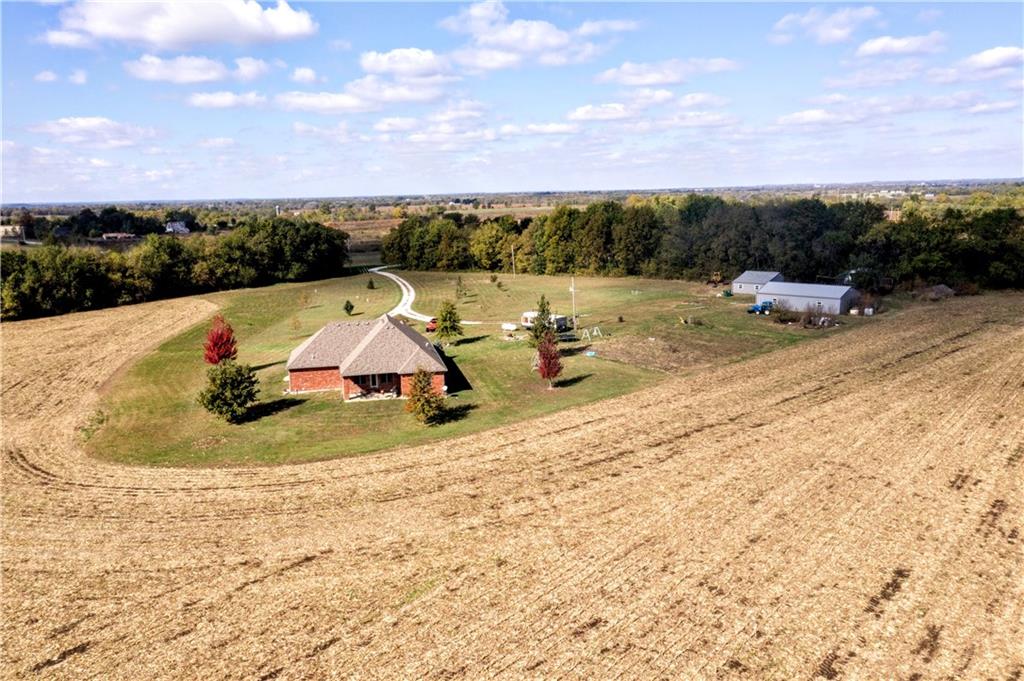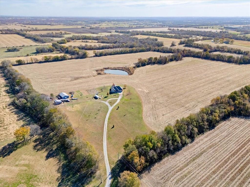 Your own private sanctuary on 20 Acres M/L—just off blacktop, surrounded by nature and peaceful privacy. The only neighbors you’ll see are deer, turkey, squirrels, and an abundance of wildlife. This thoughtfully designed open floor plan showcases excellent construction throughout, featuring a chef’s kitchen with top-of-the-line cabinetry, a massive center island, and generous workspace. Three bedrooms total, including a flexible room ideal for an office, hobby space, or guest suite. Enjoy true main-level living with wide, handicap-accessible doorways and comfort in every detail. 50x 30 and 25x26 Outbuildings ready for storage, hobby or raising livestock. Farm life, Refined.