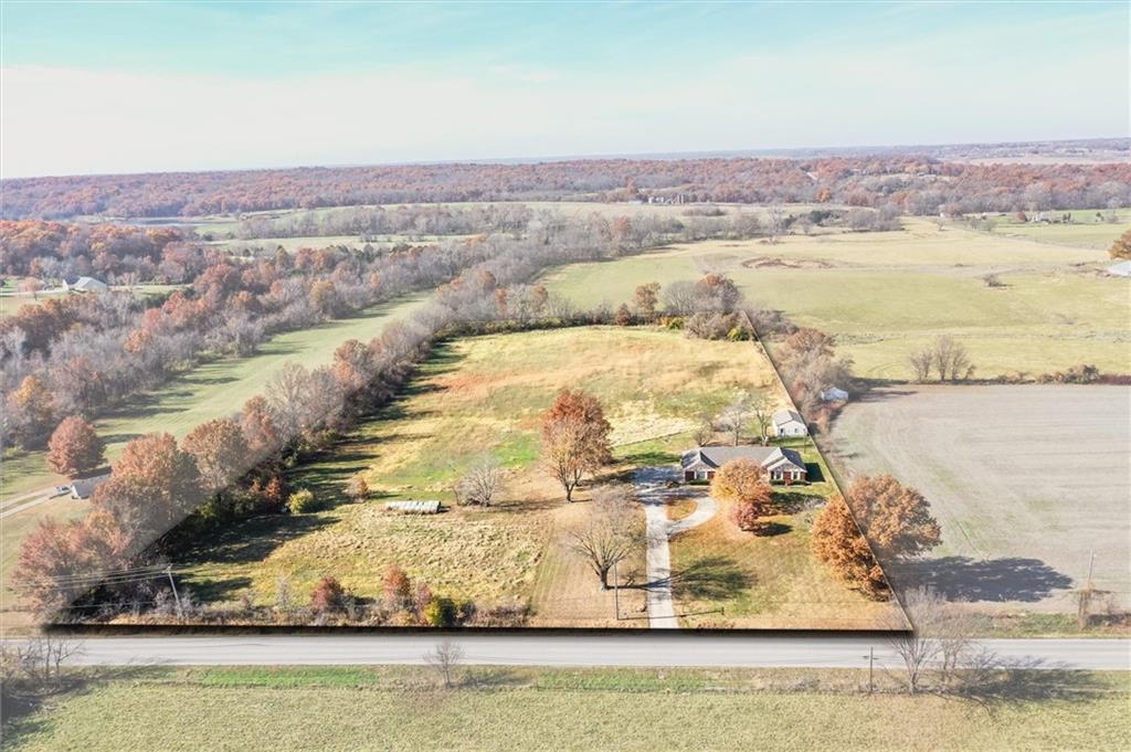 This beautiful ranch-style home is perfectly situated on nearly 10 serene acres, offering a blend of comfort, space, and endless possibilities. Featuring 3 spacious bedrooms and 2.1 bathrooms, this home boasts an open and inviting floor plan ideal for both everyday living and entertaining. The bright kitchen flows seamlessly into the dining and living areas, where large windows frame peaceful views of the surrounding landscape. Plus, a well exists on the property. Step outside and enjoy the tranquility of wide-open spaces, mature trees, and breathtaking sunsets. A large detached outbuilding provides ample room for a workshop, storage, or hobby space—perfect for car enthusiasts, small business owners, or anyone needing extra space for projects or equipment. Whether you dream of a mini-farm, private getaway, or family homestead, this property offers the freedom and beauty of country living with the convenience of being just a short drive to town.Don’t miss your chance to own this one-of-a-kind retreat with space, comfort, and opportunity all in one!
