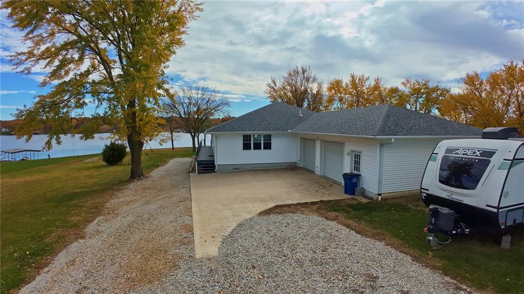 This stunning lakeside retreat captures the best of Lake Viking living—where thoughtful updates meet breathtaking views. Every detail has been carefully considered, from the newly remodeled kitchen with a convenient pantry and serving bar to the spacious, open layout designed for comfort and entertaining. Expansive windows frame perfect views of the main channel, filling the home with natural light and connecting you to the water from nearly every room. The main level features a beautiful primary suite, two inviting guest bedrooms, and a full bath. The lower level offers so much opportunity with luxury vinyl flooring sleek & stylish black ceilings. Complete with a walkout to the lake, an extra utility garage, and a convenient ¾ bath. You’ll also appreciate the oversized attached two-car garage for added ease and storage Step outside to the covered deck overlooking your private boat ramp and covered dock, now featuring a new 6,000 lb. boat lift and jet ski port. Spend your evenings around the lakeside firepit, soaking in the views and sharing memories with friends and family. Lake Viking offers something for everyone—excellent fishing, endless boating and water activities, and peaceful moments surrounded by nature. Plus, enjoy the convenience of a full-service marina right here at the lake. A new septic system was installed last year, ensuring peace of mind for years to come.