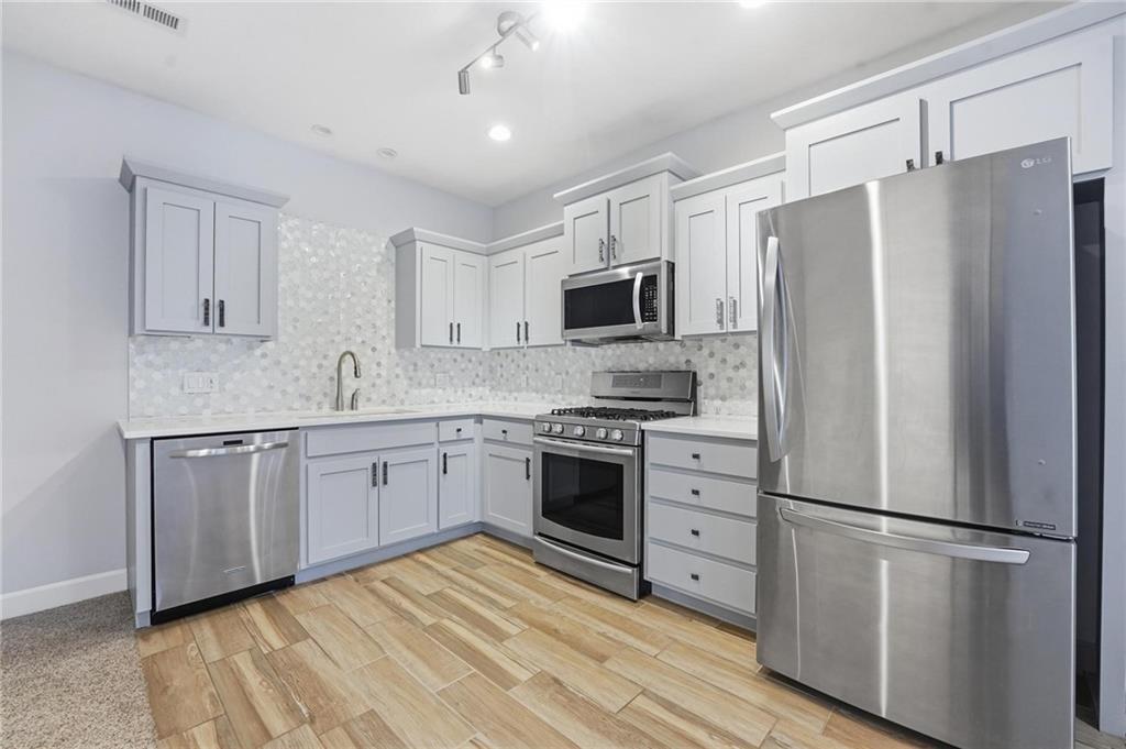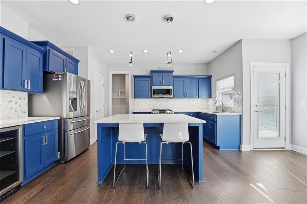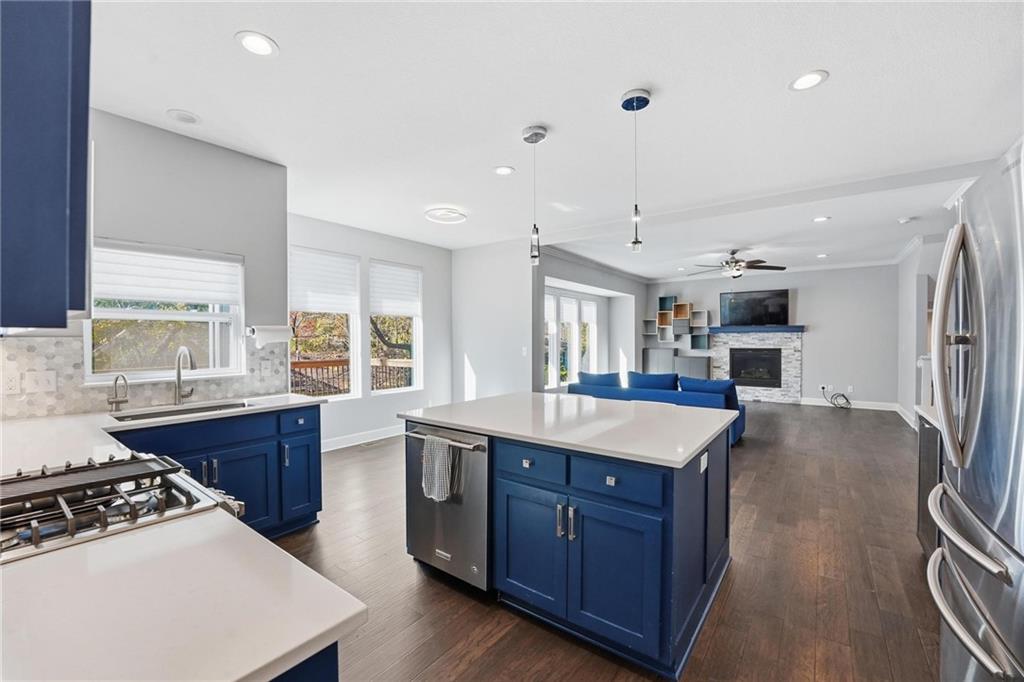 This Roeland Park home delivers standout style and comfort from the moment you arrive. Just seven years young, it offers a crisp, modern feel with warm hardwoods and an inviting layout that fits everyday living and easy entertaining. The kitchen takes center stage with quartz counters, a gas range, a spacious island, a walk-in pantry, and a dining area that opens to the living room and deck for smooth indoor and outdoor flow. A convenient drop zone sits off the garage, and the backyard features a relaxing patio and storage shed. Upstairs, the primary suite feels like a private escape with an oversized walk-in closet, double vanities, and a sleek walk-in shower. All secondary bedrooms include walk-in closets, and the laundry room is perfectly placed on the bedroom level. The fully finished walk-out basement adds a rare level of versatility with a full second kitchen complete with quartz counters and a gas range, plus a bedroom, full bath, living area, laundry, and access to the patio. It creates an ideal setup for extended stays or a dedicated hangout space. With thoughtful design, quality finishes, and flexible living areas throughout, this home brings comfort and function together beautifully in a prime Roeland Park spot.