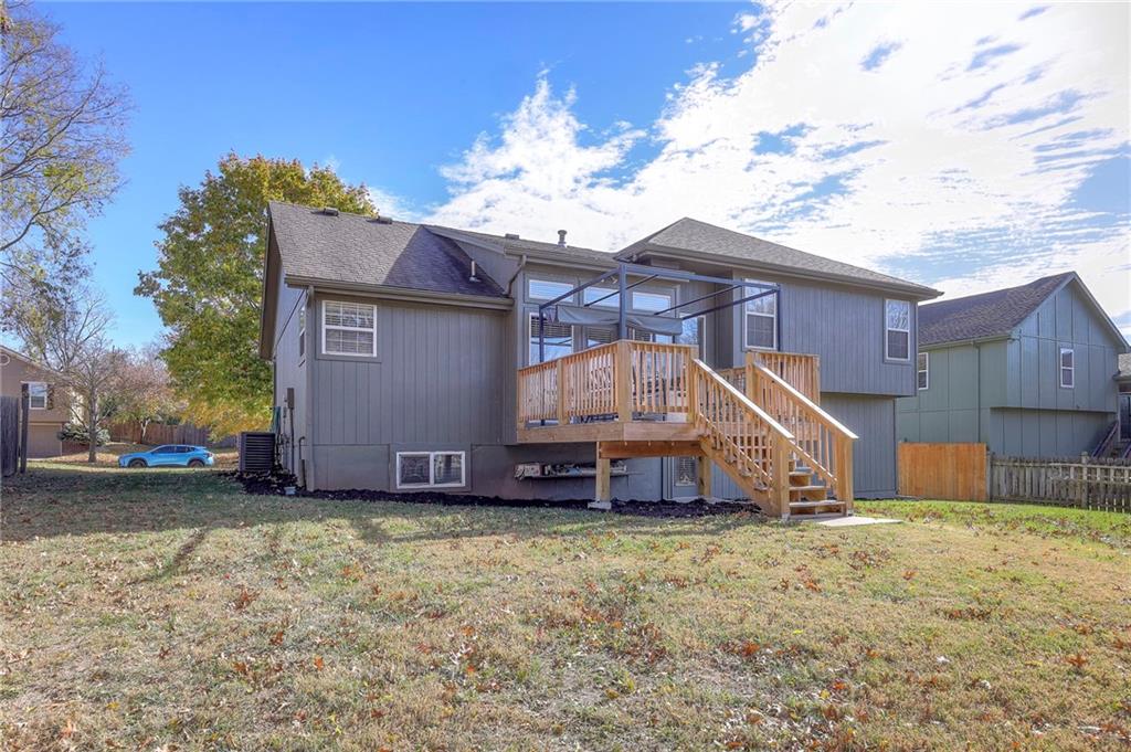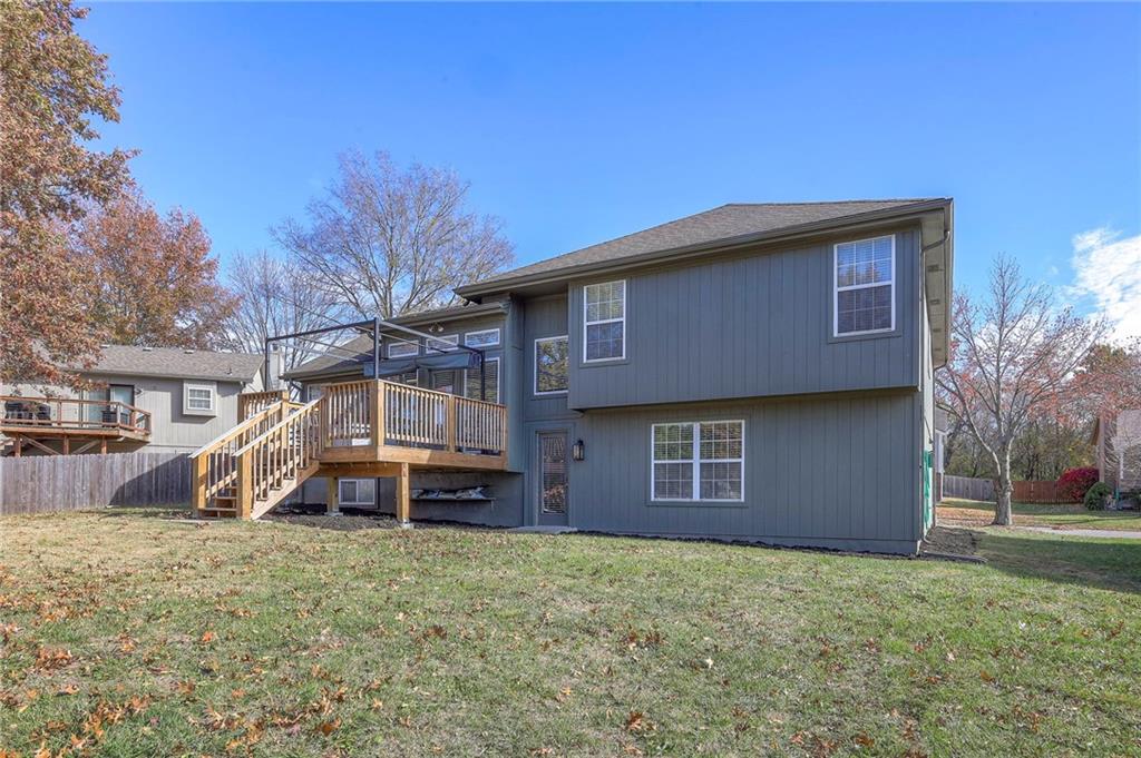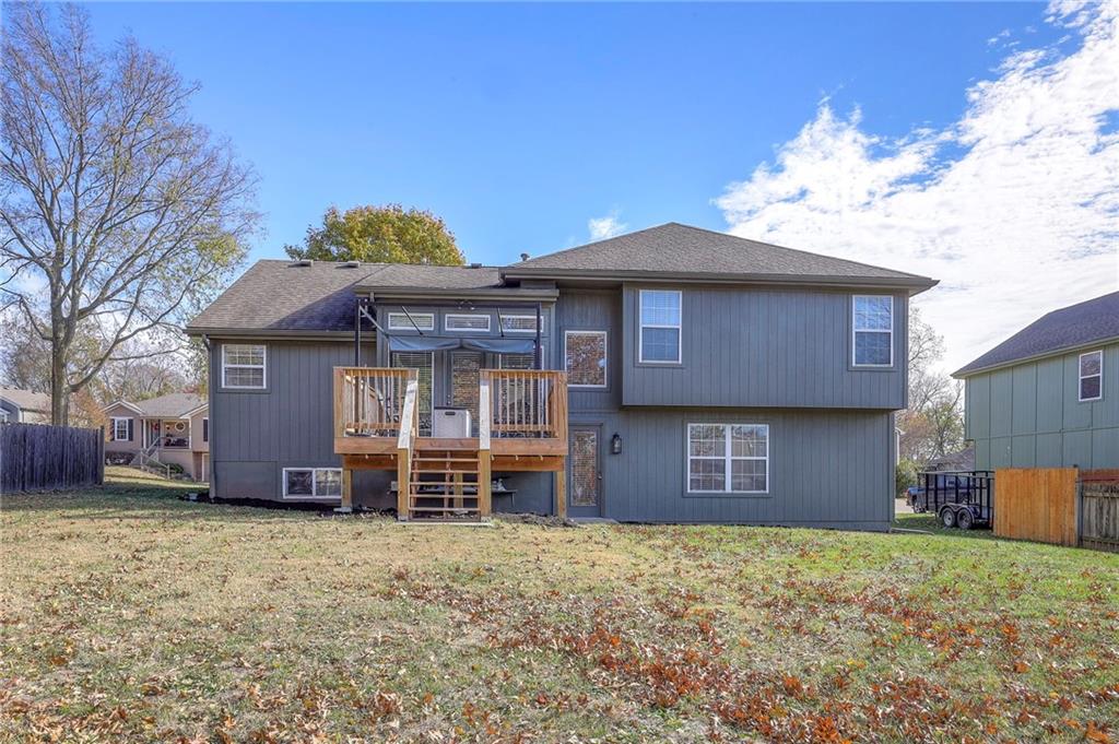 Welcome home! This beautifully cared-for property offers 3 bedrooms, a non-conforming 4th bedroom in the finished basement, and 3 full bathrooms, all set in the desirable Blue Springs School District. Just minutes from Lake Jacomo and Blue Springs Lake A full set of updates were completed in June 2024, including exterior Paint, new LVP flooring, new carpet, and refinished hardwoods, giving the home a clean and refreshed feel from top to bottom. The bedrooms are spacious and offer great flexibility for today’s lifestyles. Downstairs features a cozy family room with built-ins and an electric fireplace, perfect for movie nights, a game room, or a second living space. The basement has remained dry with no flooding history, providing confidence and additional usable space. Outside, enjoy the new deck —ideal for relaxing or entertaining. This property has been smoke-free and maintained as a “socks-only” home, reflecting the high level of care it has received.