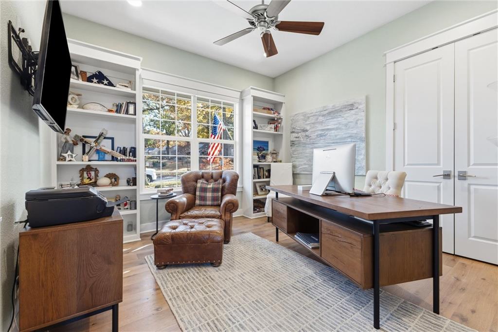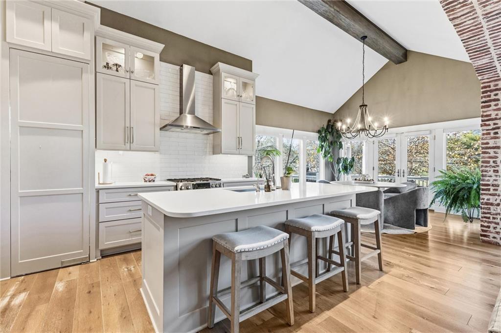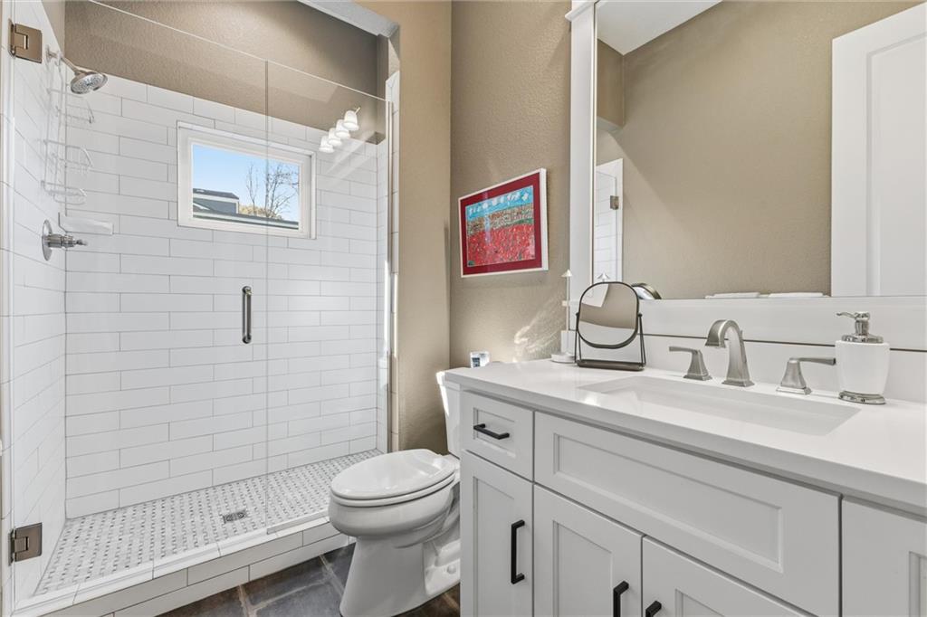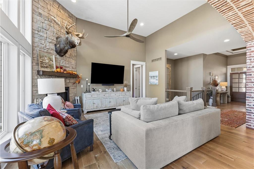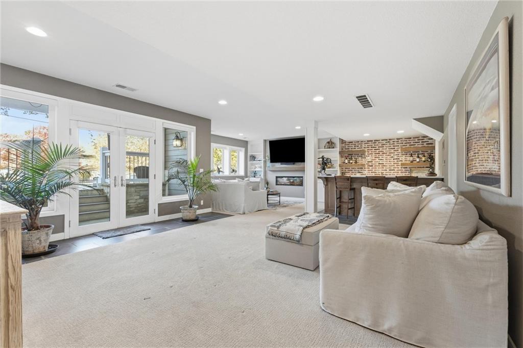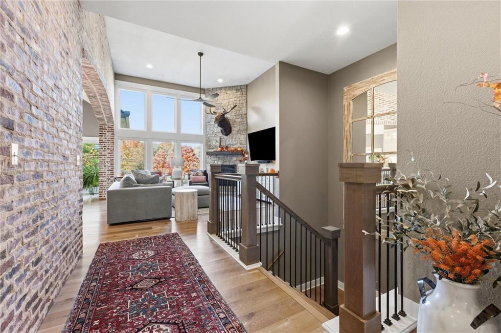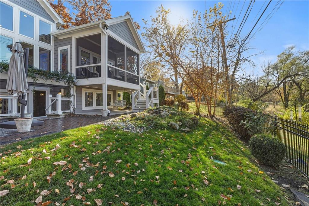 Stunning Reverse 1.5 Story Backing to Porter Park in the Heart of Prairie Village Welcome to this beautiful 4-bedroom, 3.5-bath reverse 1.5 story, built in 2019 by Lambie Homes, perfectly situated in the heart of Prairie Village. Enjoy the best of both worlds—modern construction without the wait and an unbeatable location that’s walkable to The Village Shops and backs directly to Porter Park. Step inside to discover exquisite architectural details, including wooden beams, a brick accent wall, and expansive windows overlooking the park. The main level offers a thoughtful and functional layout featuring an open-concept kitchen, dining, and living area—perfect for entertaining or everyday living. A dedicated office or guest bedroom with an adjoining full bathroom provides flexibility for work or visitors. The spacious primary suite includes a luxurious en suite bath and serene views of the park. The lower level offers two additional bedrooms, a full bathroom, and a large secondary living area—ideal for guests, movie nights, or a playroom. From the lower level, a walk-up basement leads directly to the beautiful patio and fire pit, creating a seamless indoor-outdoor flow. Enjoy the screened-in porch for morning coffee or evening relaxation and take in the stunning landscaping that blooms from spring through fall. Roses trail gracefully around the pergolas, adding charm and color to the outdoor living spaces. This home truly combines quality craftsmanship, modern amenities, and an exceptional location—a rare opportunity to own a newer home in the heart of Prairie Village, backing to one of the city’s most beloved parks.
