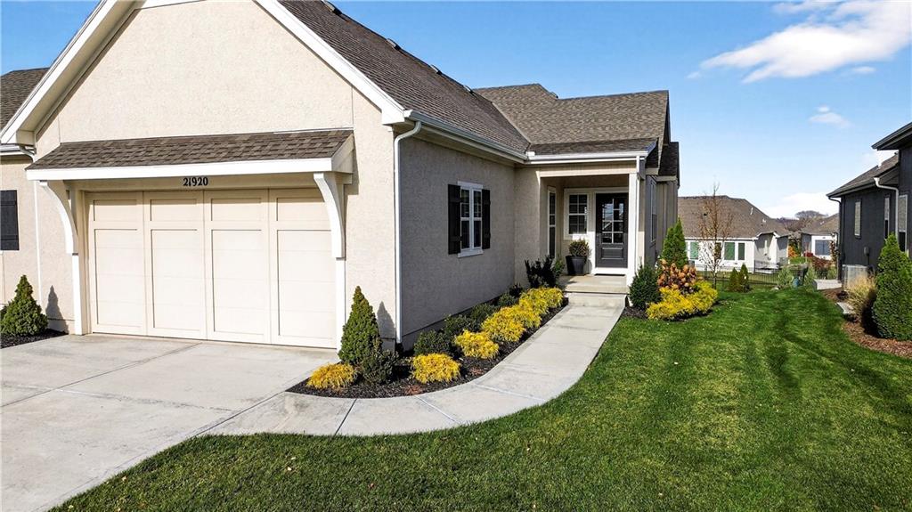 Beautiful one-owner villa in highly sought-after Bristol Highlands—meticulously maintained and truly move-in ready! This maintenance-provided home features upgraded landscaping, a full sprinkler system, and an inviting open-concept floor plan perfect for everyday living or entertaining. The light and bright kitchen offers white cabinetry, upgraded stainless steel appliances (including a gas range and large refrigerator), and flows seamlessly into the dining area. Enjoy hardwood floors throughout the kitchen, dining room, and living room. The living room features an upgraded stone fireplace, new TV (stays), and walks out to a fantastic covered deck overlooking the backyard. The main-level primary suite includes a spacious ensuite bath with separate tub and shower, tile floors, and a HUGE walk-in closet. A wonderful main-floor office—with its own full bath—can also function as a second bedroom. The finished lower level provides a generous rec room with TV (stays), two additional large bedrooms, a full bath, and excellent storage space. Additional highlights include a large 2-car garage with a brand-new epoxy floor. A must-see villa in a premier location—don’t miss this one!