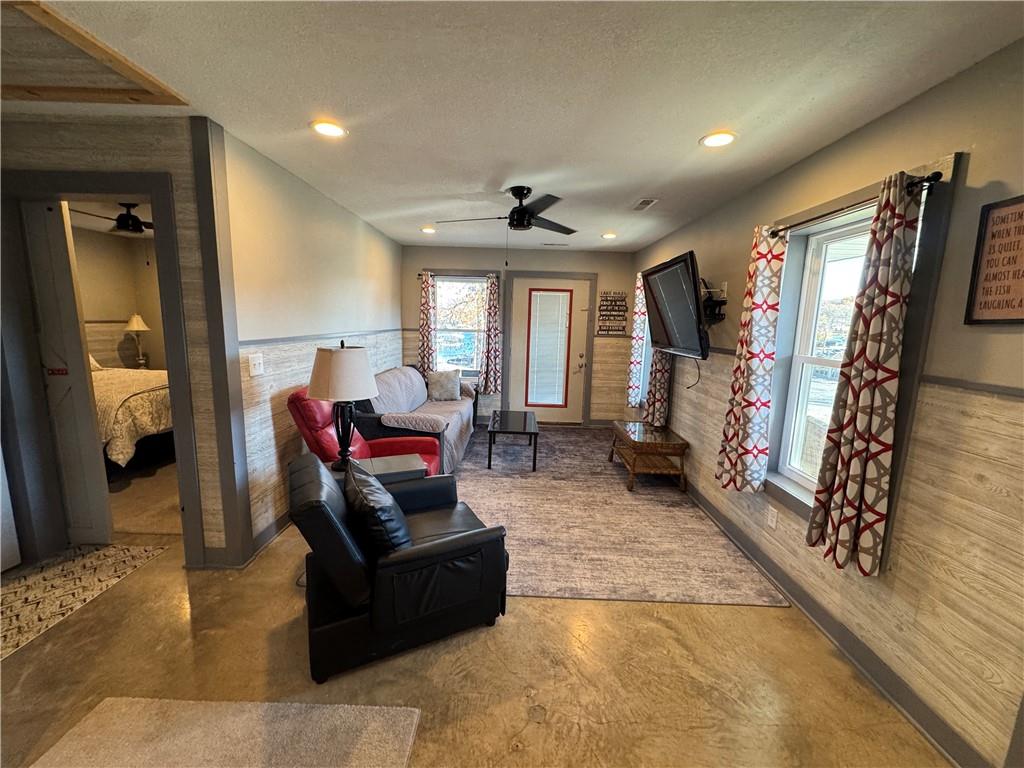 This adorable lake view cabin sits in the heart of Bass Point Resort on Lake of the Ozarks, offering just under 1000 square feet and two full bedrooms that easily accommodate queen beds. Most furnishings stay, making this the perfect low-effort personal getaway or ready-to-launch short term rental. The home features durable metal siding and a metal roof for easy maintenance, south and east facing porches for morning and afternoon sunrise & sunset lounging along with two jet ski ramps with direct lake access. Inside the full kitchen provides plenty of room for cooking as well as entertaining. You’ll find a large full bathroom with double sinks and a walk-in shower with a rain head shower head, plus bonus washer and dryer hookups located in the kitchen. (Washers & dryers available in the club house just across the street) Short term rentals are allowed nightly, weekly or monthly from April 1st through October 31st, making this a strong seasonal investment property. Bass Point Resort amenities are a major highlight and include three pools with an indoor and outdoor pools a kiddie pool, a covered fishing dock, a swim dock, boat slips up to thirty feet with electric, kayak and paddleboard rentals, a full tennis court striped for four pickleball courts, disc golf, horseshoes, playground, community fire pits and a large event space known as the Commodore Room with a full kitchen and bar. Boat docs can be rented for $18/night or purchased. The entire resort has free WiFi, and cable is available in every cabin. This practically new cabin gives you stunning lake views, solid rental potential and full access to one of the most amenity packed resorts on the lake. Perfect for anyone wanting a turnkey personal escape or an income producing seasonal rental. Don't miss your chance to live your best LAKE LIFE!!