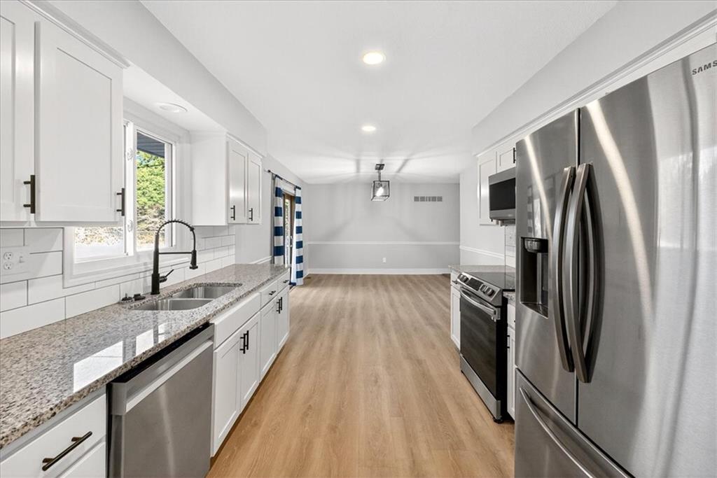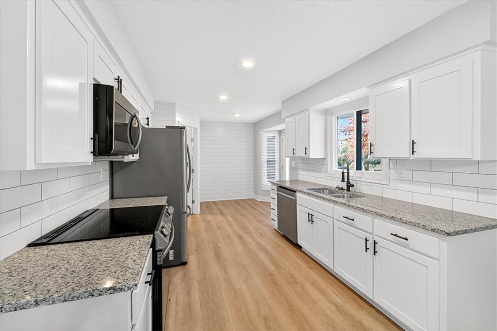 Welcome to your dream home! Located in a secluded community on a one-acre treed lot! So many updates you'll appreciate throughout the entire home inside and out! Great curb appeal with new insulated siding and wrap, stone trim, roof, gutters and landscaping! Newer windows! Step inside to the expansive great room with stone fireplace that meets the high ceiling! There's plenty of room in dining room for holiday dinners and it flows into the gorgeous kitchen with updated cabinets, counters, and appliances, and includes a walk-in pantry. The spacious primary bedroom is located away from other main floor bedrooms and offers bath with double vanities and shower with dual heads. All bedrooms are generously sized with walk-closets plus there's a large walk-in hall closet for storage. Neutral colors throughout, shiplap accents walls, gorgeous LVP flooring, beautiful tile work, updates throughout! The finished lower level features a non-conforming bedroom with closet which could also be used as an office or workout room! The huge family room offers plenty of living and recreation space. The laundry/mud room with built-ins is the perfect drop zone when entering from garage. There's also plenty of unfinished storage space with shelving. If you love the outdoors, you'll love this place! From the covered front porch to the newer large composite deck and patio space out back! The entire backyard is fenced providing so much room for fun and games and pets to run! So many gorgeous trees along the fence lines which adds some privacy. The storage shed is great for your lawnmower and tools. You'll appreciate the long double-wide driveway providing tons of parking space leading to an extra wide garage with utility sink! You'll love the community feel and there's only one entrance so no thru-traffic. Enjoy the country-like feel just minutes from highway access and amenities! Lee's Summit schools! Located in unincorporated Jackson County.