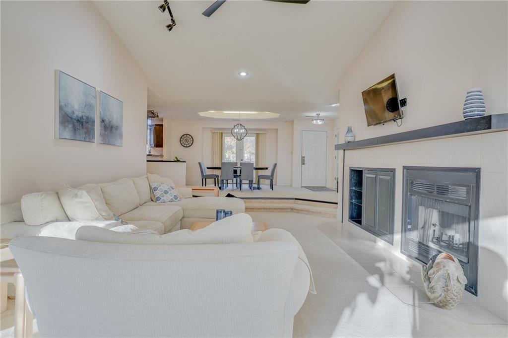 Beautiful, turnkey-furnished 3-bed, 2-bath corner condo in Four Seasons Racquet & Country Club. Walk to 6 pools, including the famous Hippo Swim-Up Bar! This updated unit features an open floor plan and incredible views. Updates include lighting, cabinets, hardware, appliances, and decor. The sunken living room has a vaulted ceiling and an entertainment center. The dining room boasts a lit coffered ceiling. The well-equipped kitchen and laundry room with W/D are ready for use. A bonus room with a wet bar provides extra space. The large, sunken Master Bedroom includes a bay window overlooking the view and his-and-hers closets. Both full bathrooms offer dual sinks, separate showers, and luxurious jetted tubs. Amenities include tennis, stocked fishing lakes, boat ramp/trailer parking, clubhouse, cable/internet, sewer, water, and trash (only electric excluded). Enjoy the large deck and 3 parking spaces. Located just 2 miles from The Strip. Vacation rentals are allowed! The condo has a great rental history!