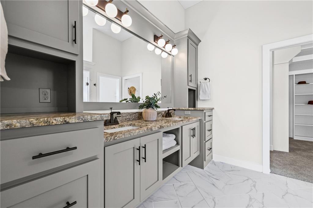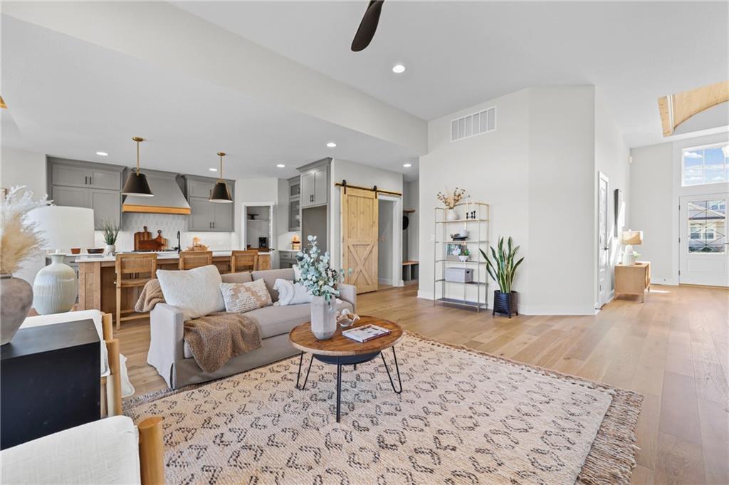 Move-in ready, beautifully designed & built for long-term livability! This exceptional home offers high-end craftsmanship, thoughtful accessibility features & beautiful designer finishes throughout. Located in the highly rated Lee’s Summit School District, it's just a short walk to the neighborhood elementary & only minutes from LSW High School! A rare find in today’s market, this home offers true ZERO ENTRY access, providing step-free transitions inside for enhanced ADA accessibility, long-term comfort & effortless first floor living. An ENERGY STAR 3.1 rating delivers superior insulation, energy efficient windows & HVAC system=improved indoor comfort & lower utility bills! Outside: beautiful board & batten siding w/stone accents, cedar trusses & covered front entry. Inside: classic-modern design makes a striking first impression w/soaring ceilings, rich engineered wood floors & an open, airy layout. The foyer features a stunning wood-accent barrel ceiling & custom wall trim that sets an elevated tone. An impressive floor-to-ceiling stone fireplace graces the family room & a wall of windows drench the main level in natural light, contributing to the seamless flow into the kitchen & dining area. The designer kitchen is a true showstopper, featuring an oversized quartz island & premium custom cabinets that perfectly complement the wood accent range hood. A gas cooktop & stainless appliances=chef's delight, w/a walk-in pantry providing super storage space for grocery staples. The primary suite is a true retreat, featuring a spacious bedroom w/tray ceiling & large windows plus a spa-like bath w/dual vanities & an oversized walk-in tile shower. A large secondary bedroom, full bathroom, a pocket office & spacious laundry room round out the main floor. Downstairs, you'll find a large WOW FACTOR Rec Room w/floor to ceiling fireplace, a gaming area, wet bar, 2 additional spacious bedrooms serviced by a 3rd full bathroom & a 1/2 bath (with urinal!) - perfect for poker night!