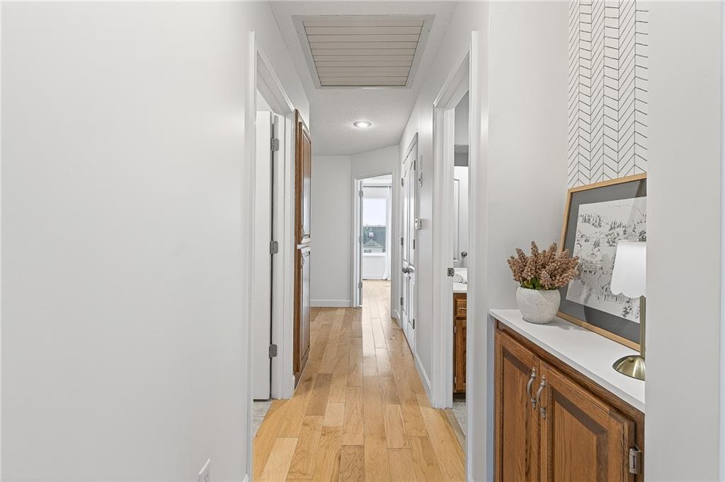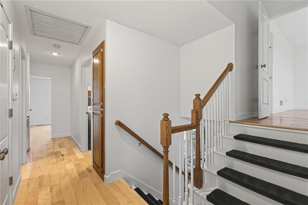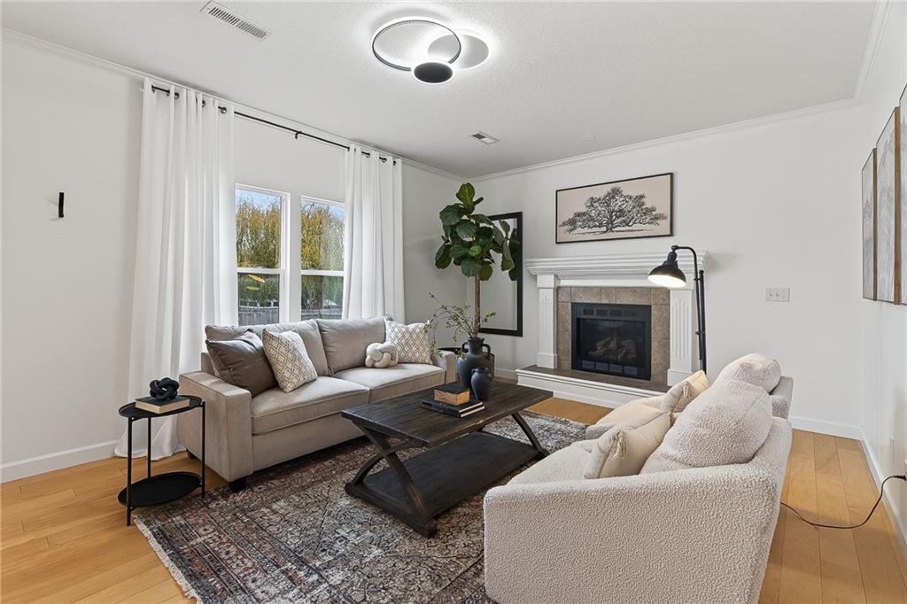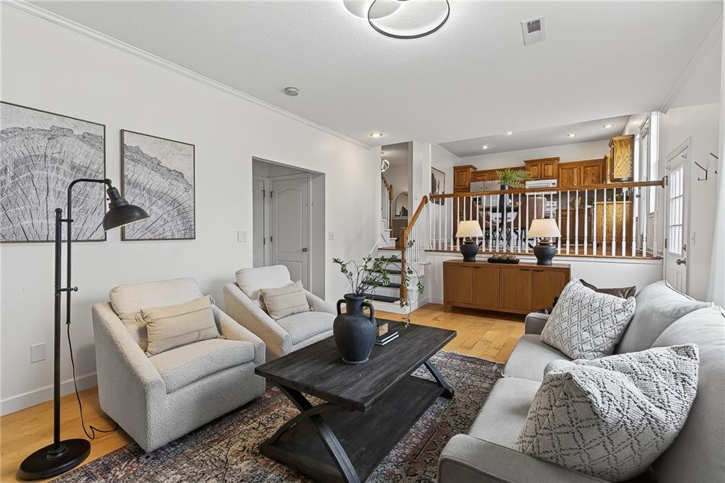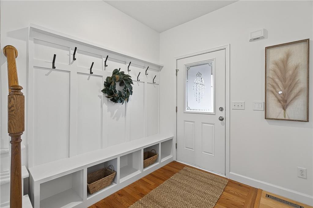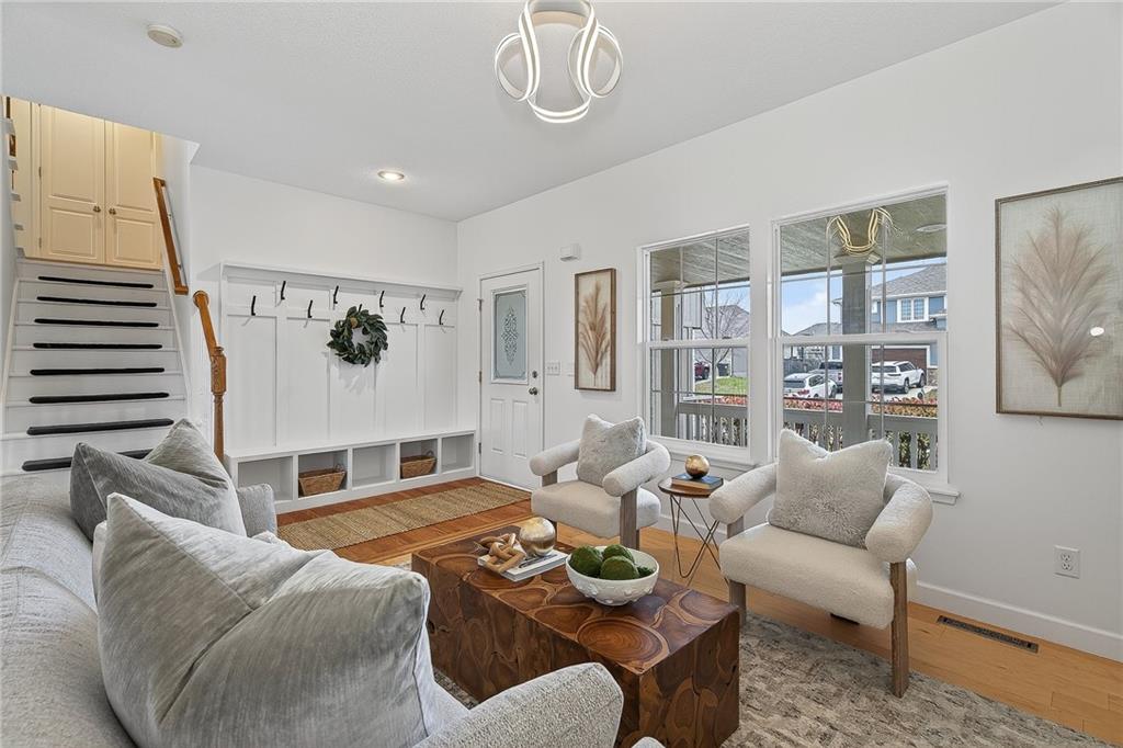Beautiful Rosewood Hills atrium split with 4 bdrms, 2.5 baths, new roof (2024), over 2000 square feet of finished living space + bonus unfinished daylight sub-basement for storage and the workout area! Entryway with decorative boot bench, adjacent 2nd living area or formal dining room (you pick!), eat-in kitchen with island/breakfast bar with additional storage/seating, pantry, and walk-out great room with fireplace. Kitchen opens to the deck with pergola and steps down to the patio and large fenced yard with sprinkler system – perfect for pets, play, and BBQ! The primary vaulted suite features a sizeable walk-in closet with built-ins and ensuite bath featuring double vanities, walk-in shower and jetted tub. 4th private bedroom is on its own level with huge walk-in closet that could make a great home office + bonus door to the walk-in attic storage space. Additional features include: conveniently located bedroom-level laundry room, attic fan, all wood floors (with cork underlayment upgrade for sound, warmth), fresh interior/exterior paint, radon system, added insulation, 3-car extra deep garage with door to back yard, and built-ins/workbench for the tools. All appliances stay including newer fridge, washer and dryer. Excellent cul-de-sac location within walking distance to community pool, elementary, fun Rosewood Hills events, and easy highway access to all things KC!