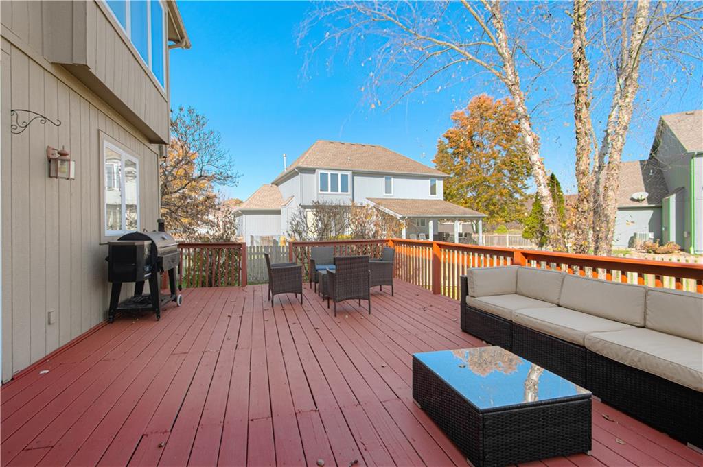 Gorgeous two-story home that welcomes you the moment you walk through the door, wrapping you in warmth with its soaring ceilings, grand entryway, and the kind of first impression that instantly feels both elegant and comforting. The open, light-filled floor plan is highlighted by a dramatic wall of windows in the Living Room, beautifully framing the cozy fireplace. The Kitchen opens to the Breakfast area, Living Room and Formal Dining Room and features hardwood floors, a pantry with generous custom cabinetry and granite counter space. Ideal for everyday living and gathering with friends and family. Upstairs, the expansive Primary Suite offers all the room you could want, featuring a generous sized Bedroom that feels open and relaxing. The ensuite includes a double vanity, granite counters, tile flooring, updated shower and a jetted tub, all complemented by a massive walk-in closet that provides incredible storage and organization. Three additional Bedrooms each have direct access to full bathrooms—two connected by a Jack-and-Jill layout and one with its own private Ensuite. The finished lower level is a standout, showcasing a gorgeous built-in entertainment center that gives the space a custom, elevated feel. A newly finished weight room/workout space makes it easy to stay active at home, and you’ll appreciate the great storage throughout. This level also includes a wet bar and a full bath, making it an ideal spot for entertaining or hosting guests. Convenience shines with a main-level laundry room, a 3-car garage, and a freshly stained, extra-large deck overlooking the fenced backyard—perfect for outdoor dining, evening relaxation, or weekend gatherings. Tucked in a highly desirable neighborhood within a sought-after school district, this home delivers the space, updates, and floor plan that buyers are truly searching for.