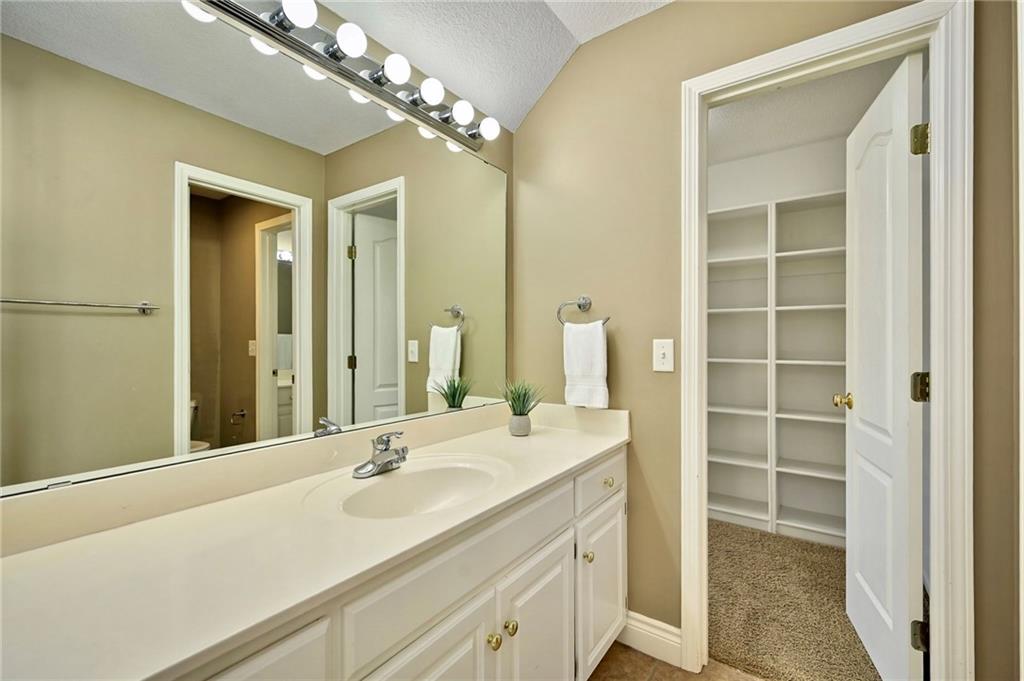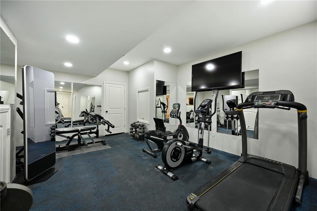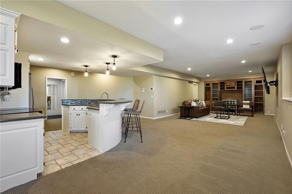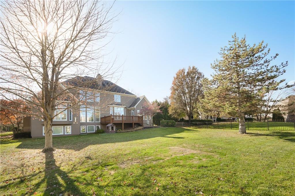 Looking lovely in Leawood is this 1.5 story home with a phenominal floor plan that is laid out with large rooms and spaces. Many big windows let in lots of light and have plantation shutters on the main level! The kitchen has double ovens, warming drawer, Viking gas range with downdraft, walk in pantry and is open to the hearth room with a see through fireplace. The main level office features a wall of custom cabinetry and new carpet. The primary on the main level has an updated tile shower and freshly painted cabinets. Upstairs the bedrooms are generously sized and paired with a large loft room for extra space! The lower level is open with a kitchenette, full size refrigerator and bar seating. A 5th non-conforming bedroom, full bathroom and big workout room bring every bit of functionality to this home. All located on a lot with a fully fenced backyard, newer driveway and sidewalk, just down the street from the neighborhood pool, in Iron Horse Estates surrounding the public golf course and driving range. The location offers so many nearby amenities, and award winning schools!