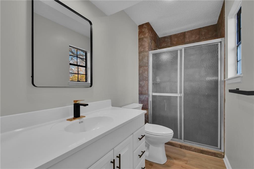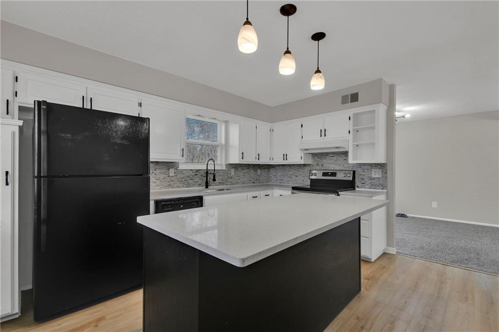 Beautifully remodeled three level home with vaulted ceilings, kitchen and dining room views, fireplace, walk out lower-level rec room, room for fourth bedroom below, deck with unobstructed views, rural feel, city close in desirable Indian Creek Subdivision in the heart of Lee’s Summit. Step inside to soaring vaulted ceilings that open up the main living space, highlighted by a stunning fireplace and accent wall that brings warmth and character. The kitchen and dining room overlook the main level, offering great sightlines and natural light. The updated kitchen features white painted cabinets, quartz countertops, a spacious island, and all-new fixtures that tie the modern look together. The home shines with fresh interior and exterior paint and many brand-new windows, bringing in great natural light while boosting energy efficiency and curb appeal. With two finished lower levels, you have flexible space for a home office, gym, or a fourth non-conforming bedroom. The lower-level rec room opens directly to the huge, fenced backyard—complete with gorgeous mature maple trees and even a pear tree that produces fruit. A great city-maintained green space with paved walking path and city park are right out the backyard! Additional upgrades include new plush carpet with premium pad, luxury vinyl plank tile in the kitchen and bathrooms, and fresh finishes throughout. Enjoy outdoor living on the oversized deck with unobstructed views or step straight out from your yard to enjoy the city park and walking trail. This one has the updates you want, the space you need, and a location you will love. Make it yours today.