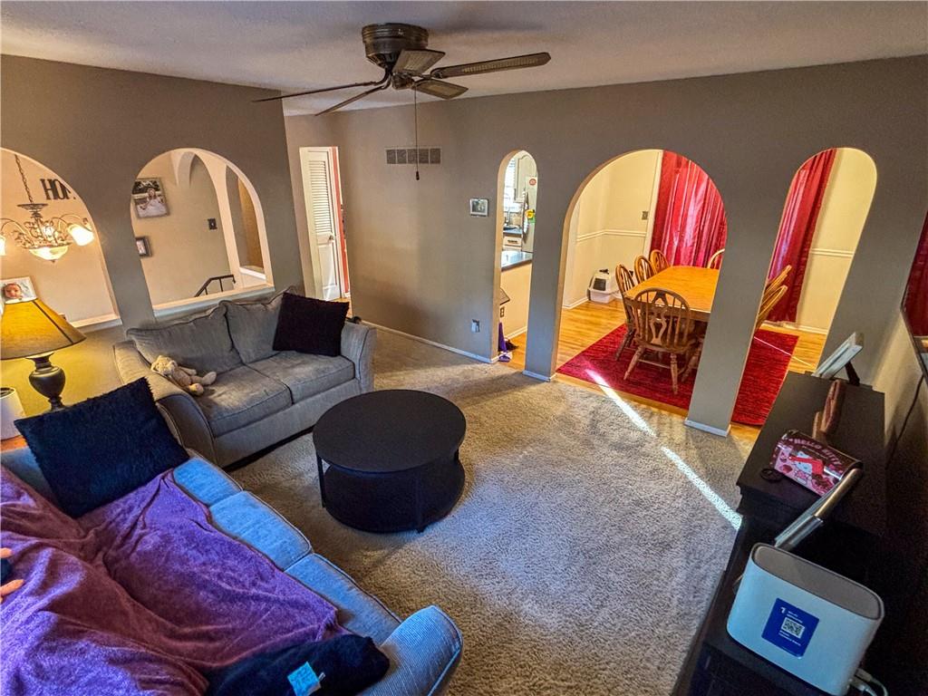 This home is being sold as a short sale. Welcome Home! Main level includes an inviting kitchen with granite countertops, tile backsplash, gas stove, farmhouse sink, stainless steel refrigerator that's staying, dining area with sliding glass door to sunroom and large deck. Living room boasts large windows, carpet. Hall bathroom with tub shower combo, primary suite included attached full bathroom with updated stand-alone shower and two additional bedrooms round out the main level. Basement with two stall garage access, large finished area in basement with LVT flooring which could be second living area, bedroom or playroom. Utility room features large tankless hot water tank. Large yard. Do not miss this beauty!