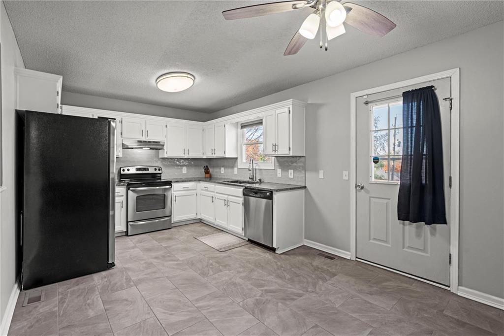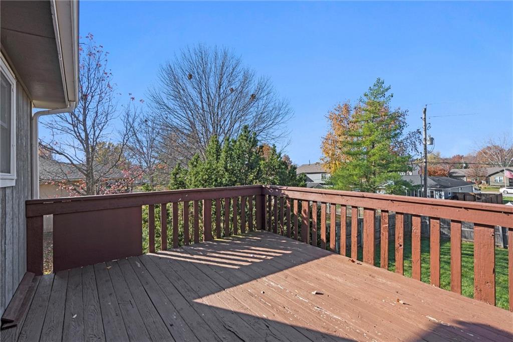 The moment you open the front door, the bright, vaulted living room steals the show. Natural light pours across the space, highlighting a layout that feels open, comfortable, and instantly the house you'll want to call home. The kitchen is finished with white cabinetry, granite countertops, stainless steel appliances, and a modern tile backsplash, flowing into the dining area and offering an open view of the living room below. The hallway bathroom has direct access to the primary bedroom and includes a dedicated sink and vanity inside the suite—an ideal setup that adds privacy and everyday convenience. Two additional bedrooms complete the upper level, while the lower level offers a generous rec room that’s perfect for a second living space, hobby room, or home gym, along with a combined laundry and full bath. Outside, enjoy an elevated deck overlooking the spacious fenced yard, plus a patio area ready for grilling or gatherings. Beyond the home itself, the location can't be beat! Tonganoxie Elementary and Middle School are just around the corner, and everyday essentials like parks, grocery stores, and downtown shopping are just minutes away. It’s a spot where daily life feels organized, connected, and comfortable.