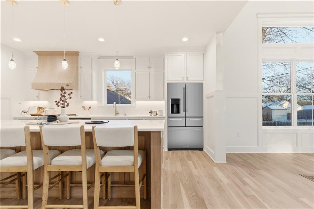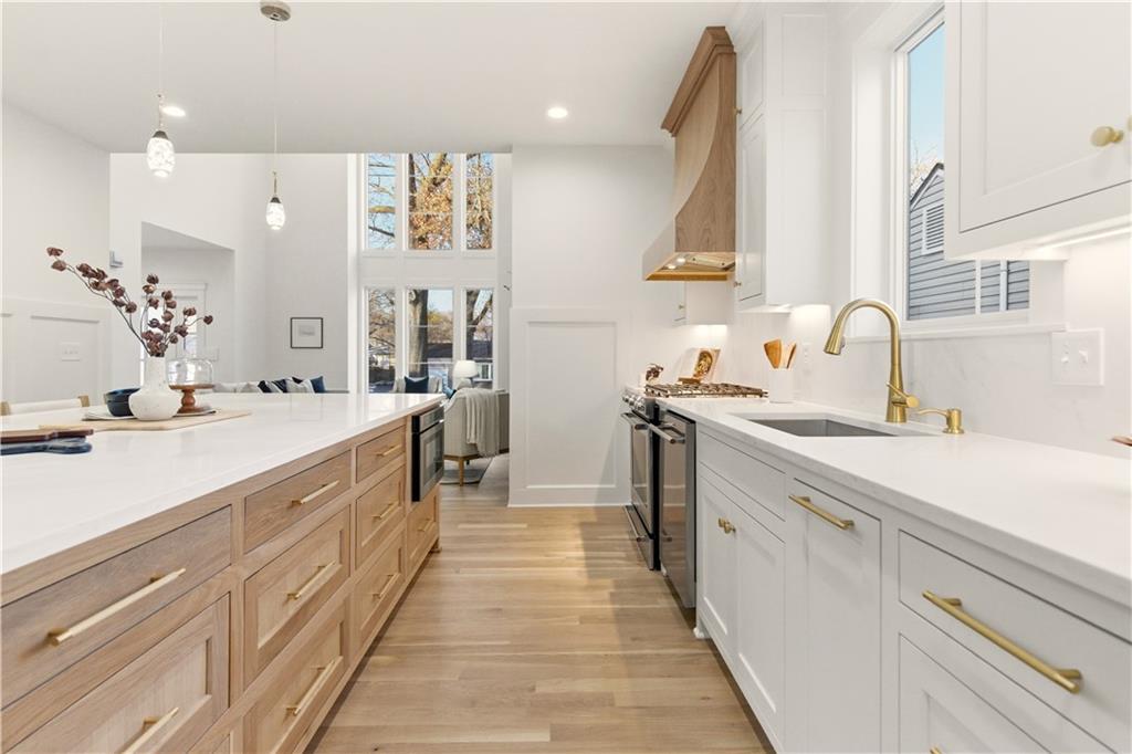 Beautiful new 5-bedroom home in the heart of Prairie Village. The layout is designed for everyday living, with a main-floor primary suite, two bedrooms upstairs plus an office or flex room, and two bedrooms in the finished lower level. The stunning two-story great room allows for natural light providing an open and bright feel. Thoughtful upgrades are woven throughout the home: including 8-foot doors on the main level, a striking two-story family and dining room, white oak flooring and cabinetry, and a beautifully designed kitchen with an oversized island. Enjoy the covered deck, privacy fence, laundry hookups on all three levels, full sprinkler system, and a convenient washing station/mudroom. The fully finished lower level expands the living space with a full entertainment area and bar. The location keeps you close to Mission shops, Meadowbrook Park, and The Village, while still giving you a quiet, neighborhood feel and easy access to daily commutes.
