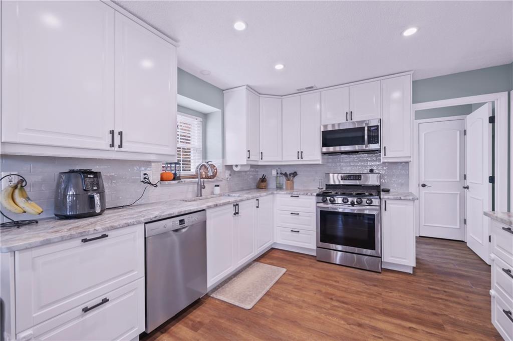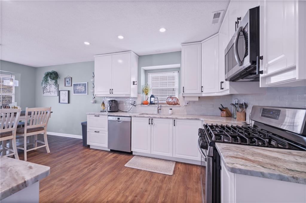 Stunning home in well sought after Roanoke Place offering top to bottom updates with a focus on quality and organization. The 2024 kitchen renovation is an envious highlight: custom four shelf cabinetry with built in organization, deep drawers with interior pullouts, soft close hardware, a carousel spice cabinet, pull out pots and pans system, natural dolomite countertops, a Blanco Silgranit granite composite sink, floor to ceiling height pantry with pull out drawers, including a deep appliance drawer. Brand new composite deck with pergola, new 6 ft privacy fence, new upgraded carpet in the bedrooms and stairs, two new driveway tiles, deep garage, New hot water heater, new exterior back door with built in blinds, new front and back screen doors with pull down screens and soft close, and three new windows upstairs. The bedrooms are spacious, and the primary suite offers two separate closets. This home shows care, craftsmanship, and thoughtful design throughout.