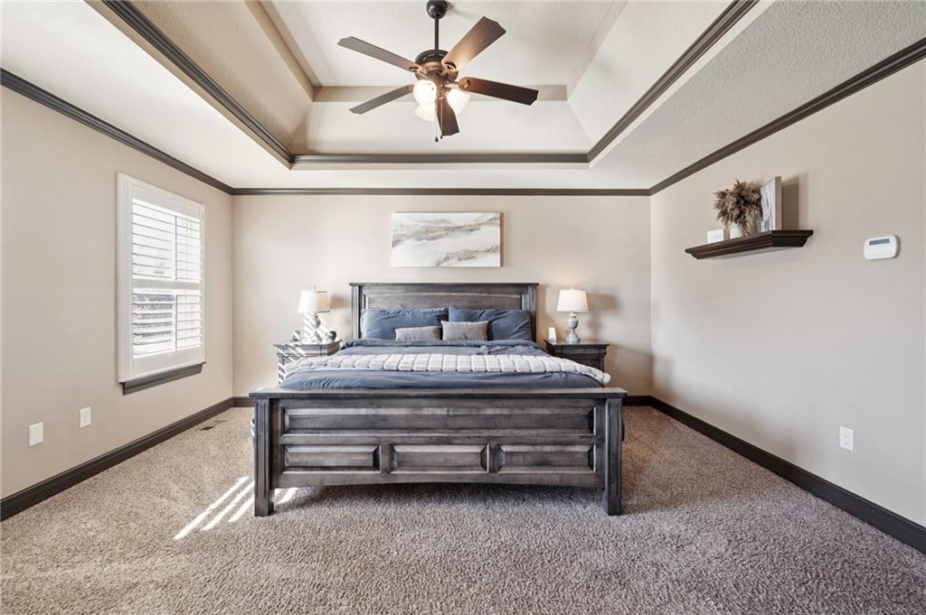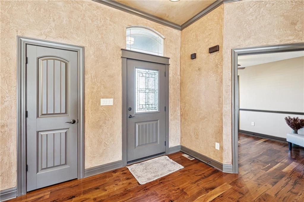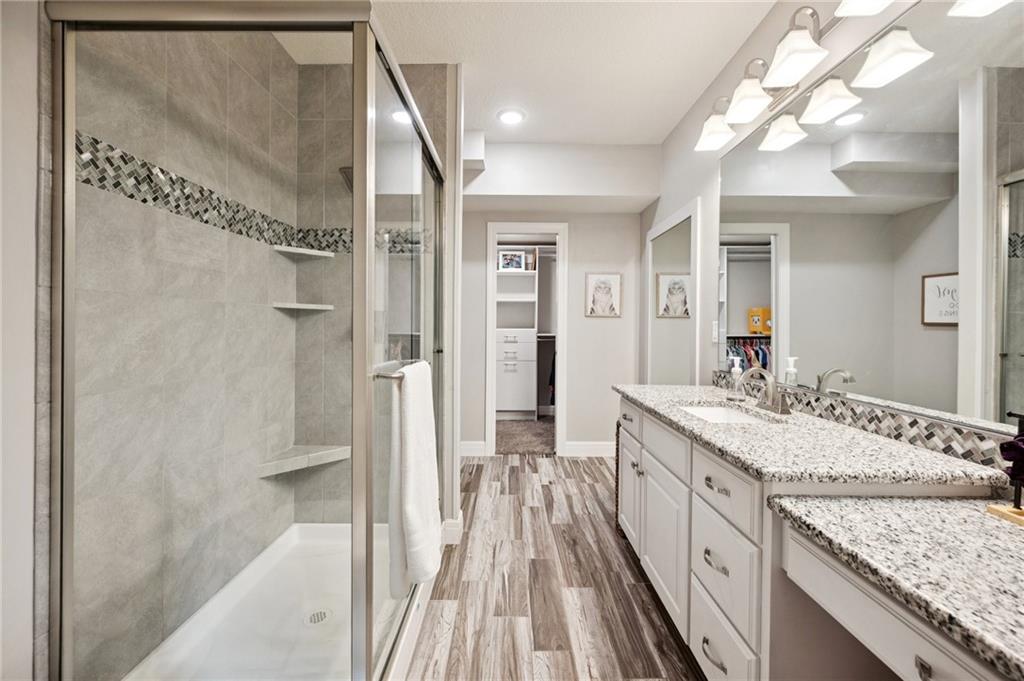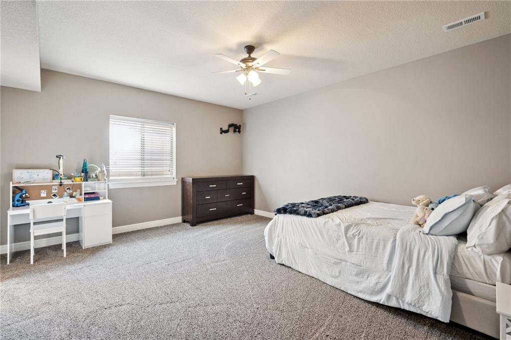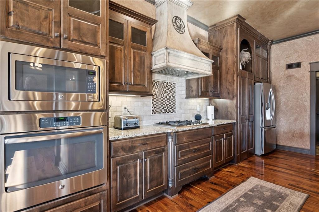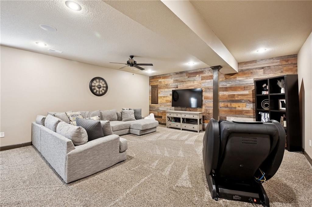 Amazing 5-bedroom, 4-bathroom ranch home located in the quiet Estates of Chapman Farms! This spacious, open-concept layout is designed for comfortable living and elegant entertaining. The main floor features a formal dining area, a large kitchen with a walk-in pantry, stainless steel appliances, gas cooktop, and a generous island overlooking the expansive great room with a cozy corner fireplace. A bright breakfast nook completes this inviting space. The main level includes a bedroom perfect for a home office, a second bedroom, and the primary suite—complete with a comfortable sitting room, a luxurious bathroom offering a separate glass shower and soaking tub, and a walk-in closet with abundant storage. The lower level is made for entertaining, showcasing a massive recreation room with a full wet bar and stylish accent wall—ideal for hosting parties, game nights, or movie marathons. Two additional bedrooms and two bathrooms provide plenty of room for guests, with extra unfinished space ready for storage, a hobby room, or a home gym. Step outside to your backyard oasis featuring a covered porch with a stone fireplace, plus a stunning in-ground pool and hot tub—perfect for relaxing or entertaining.