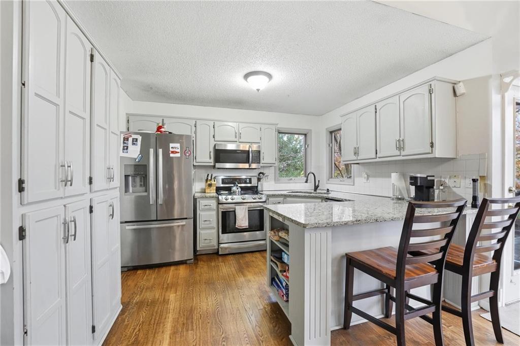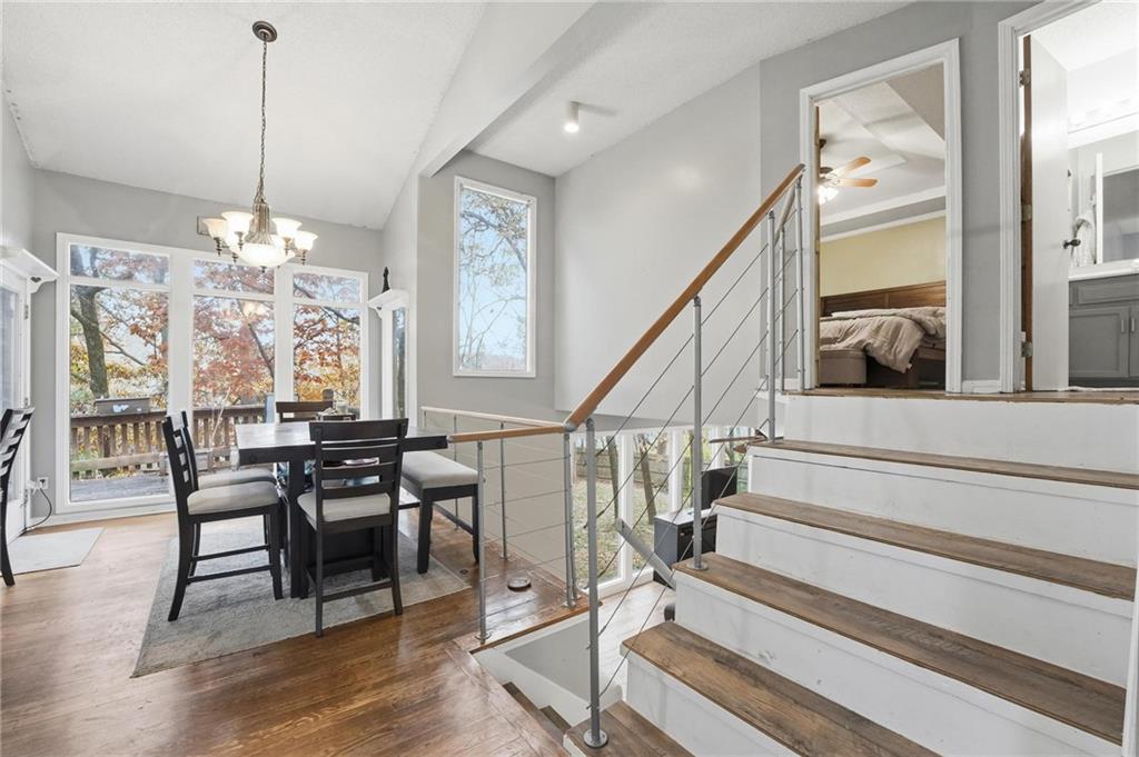 This cul-de-sac charmer brings space, privacy, and a layout that fits real life. The yard feels like your own little park with mature trees all around. Inside, the vaulted living room sets the tone with great natural light. The kitchen has granite counters, updated appliances, and LVP that continues into the bedrooms for a clean, cohesive look. The dining area opens to a deck that overlooks the trees, perfect for easy mornings and relaxed evenings. The primary suite has a roomy walk in closet, and the finished lower level gives you bonus hangout space with a walkout to that huge backyard. This home blends comfort with function in a location that feels tucked away yet close to everything.
