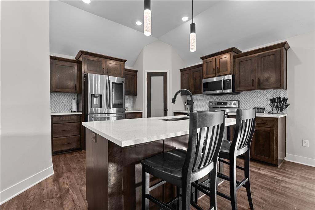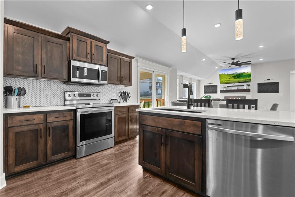 Beautiful, modern home in highly sought-after Rosewood Hills! Only a few years old and exceptionally well cared for, this property offers 5 true bedrooms, an extra-deep 3-car garage, and a bright, open floor plan with vaulted ceilings. The kitchen features a large island and walk-in pantry, with seamless flow into the living and dining areas. The primary suite is thoughtfully positioned on its own side of the home, providing added privacy from the additional main-level bedrooms. A main-floor laundry room adds everyday convenience. The finished lower level includes a true fifth bedroom and additional bedroom or flex space, plus access to the oversized garage. Outside, enjoy a fenced-in yard perfect for pets, play, and entertaining. Located in an energized neighborhood close to top-rated schools, this move-in-ready home checks every box!