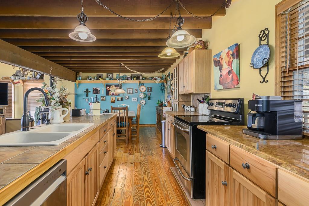 Welcome to this warm and inviting rustic home nestled on a beautiful 1-acre lot that backs directly to serene woods. From the moment you arrive, the charm is unmistakable—wide plank wood floors, a commanding exposed beam, and an open, airy layout create a space that feels both timeless and comfortable. Relax on the front porch, the perfect spot to sit, rock, and watch the world slow down. The property is a haven for nature lovers, with deer, turkey, and abundant wildlife frequent visitors to your backyard. Inside, the home’s rustic character shines through natural materials, warm wood accents, and a layout designed for easy living. Whether you're entertaining guests or enjoying quiet evenings at home, the open living spaces offer plenty of room to gather and unwind. Fire up the wood stove on a chilly night. With its peaceful wooded backdrop, classic country charm, and inviting outdoor spaces, this property offers the private sanctuary you’ve been searching for. HVAC system approx. 2 years old. On 1.13 acres, secluded and private. Wheel chair accessible ramp in the front.
