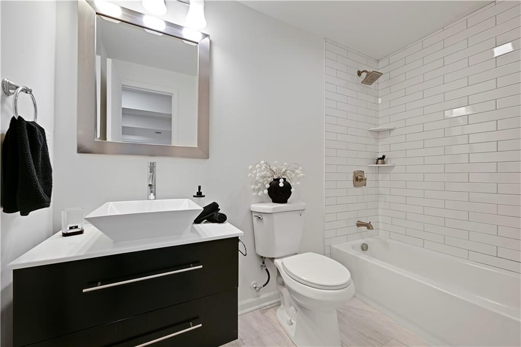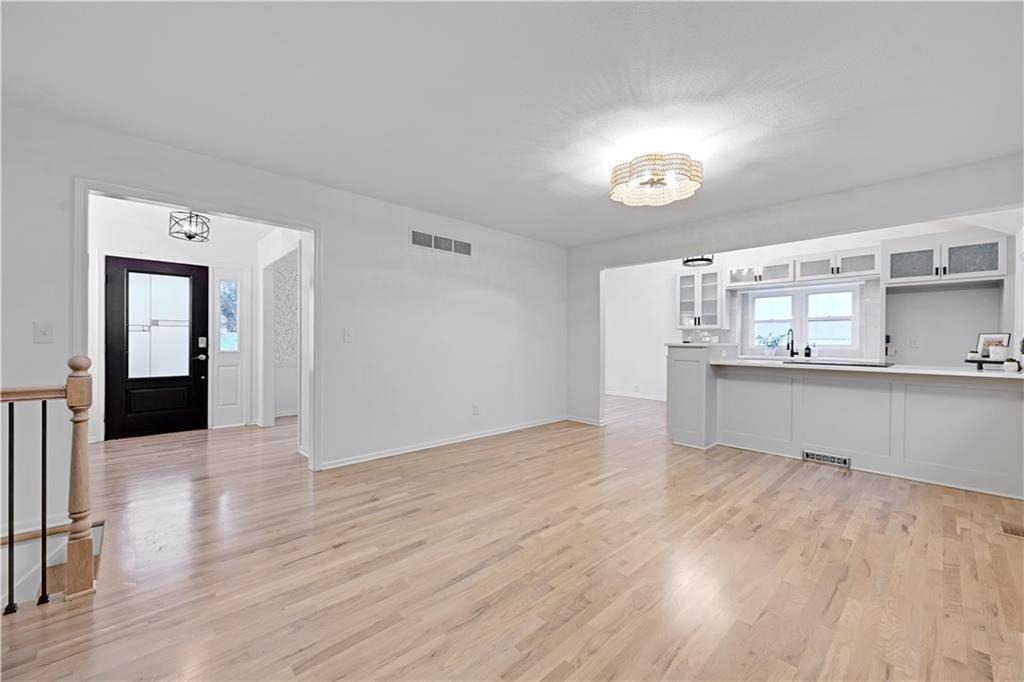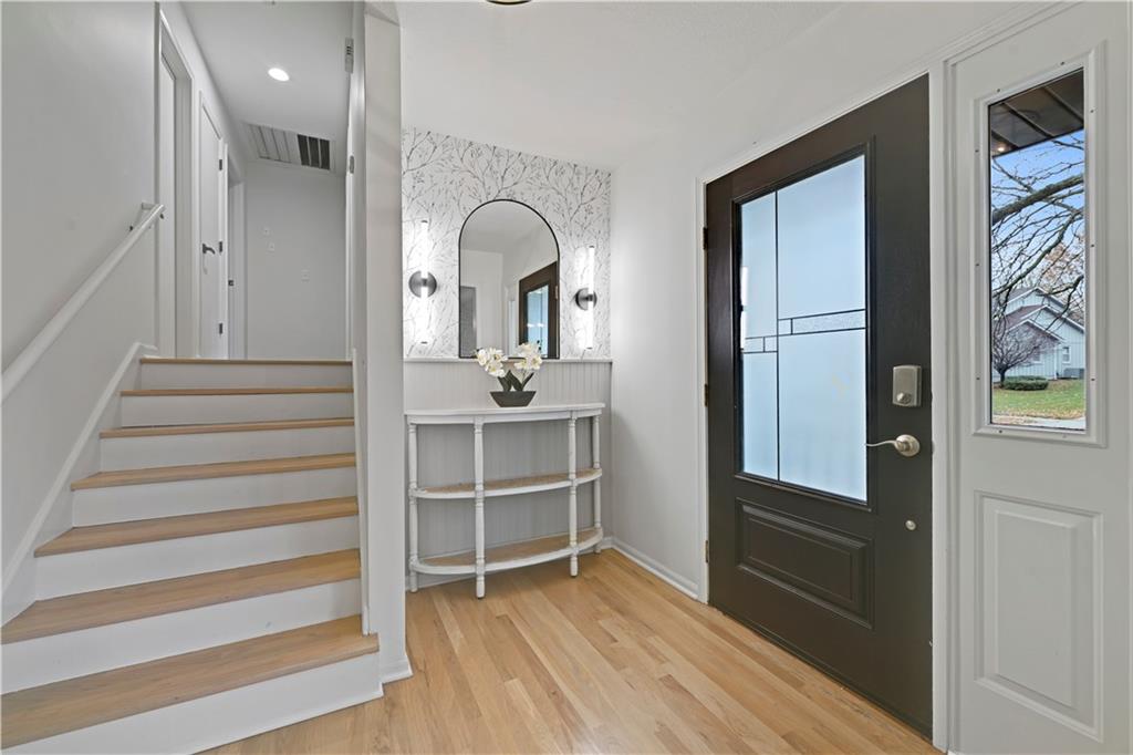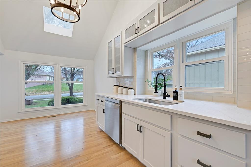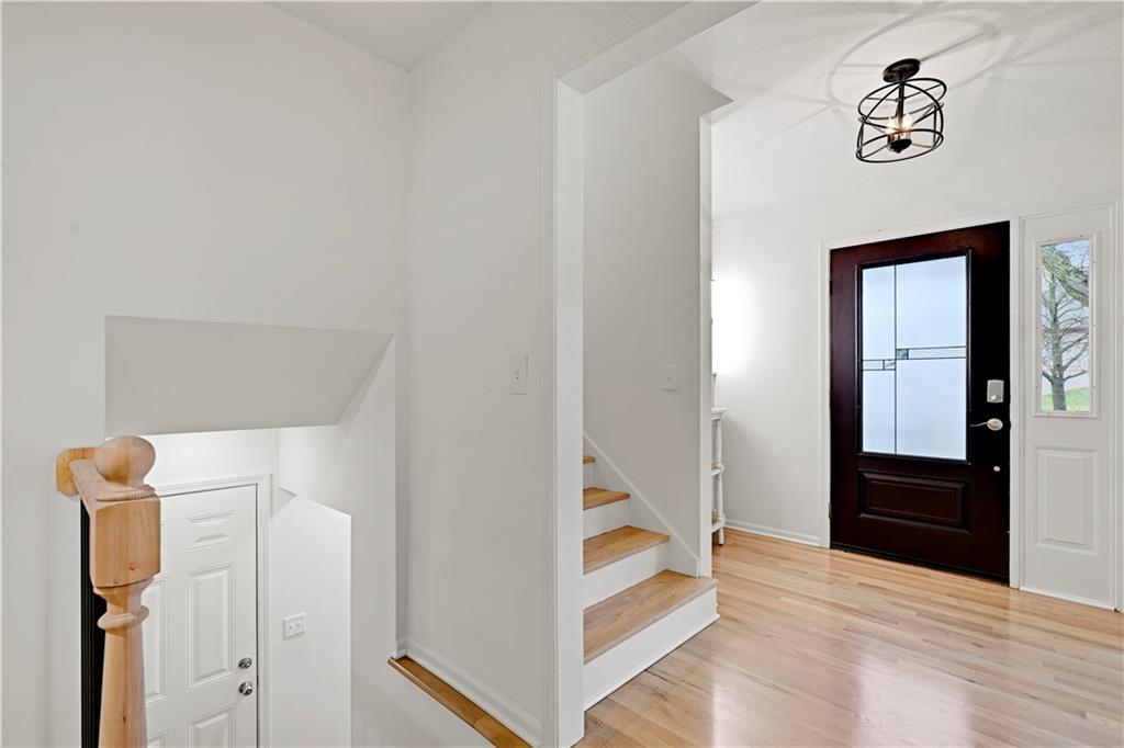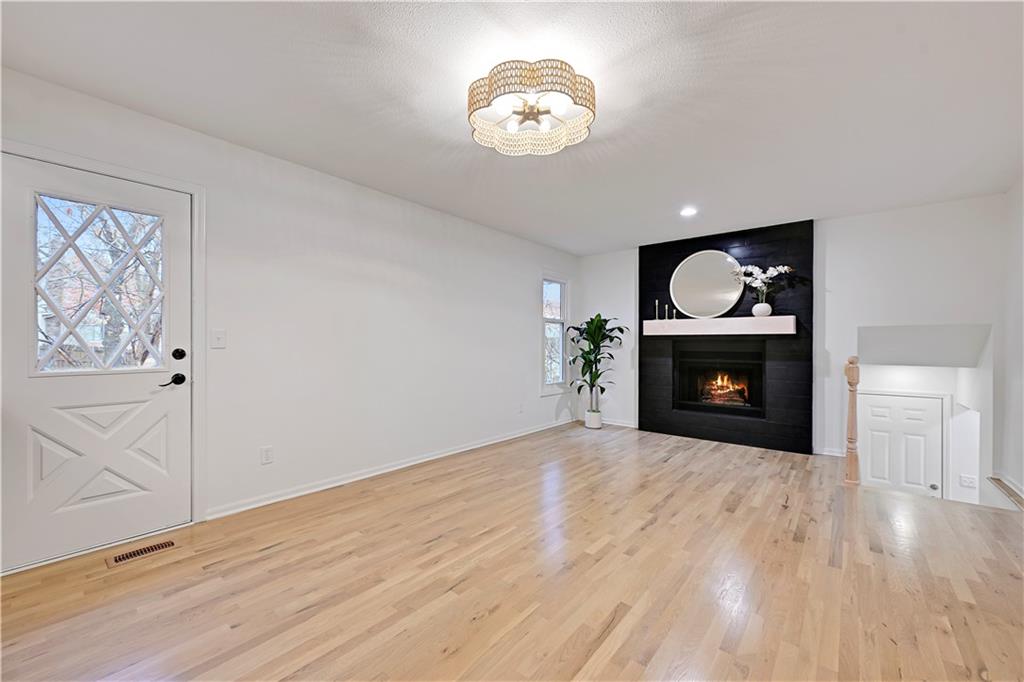 STUNNING TOP-TO-BOTTOM REMODEL! This charming home delivers an open-concept layout loaded with style and smart updates. The living room features a sleek black brick fireplace and beautiful hardwood floors that run throughout the main level and staircase, all flowing seamlessly into the brand-new kitchen. The kitchen is completely redesigned with new cabinetry, quartz countertops, subway tile, an electric range with a hidden pop-up/down vent fan, a breakfast bar, a window over the sink, and a cathedral ceiling with skylight for incredible natural light. There’s also a breakfast area plus an adjoining space that can function as a dining room, office, or playroom—whatever fits your lifestyle. A door just off the living room opens to a huge deck overlooking mature trees for true privacy. Head upstairs to find three bedrooms, including a spacious primary suite with its own fully renovated bath featuring gorgeous tilework, upgraded shower heads, and a new vanity. The second full bath is also freshly updated. The lower level offers a tiled family room, a 4th bedroom, and a stylish laundry room. Exterior vinyl siding and newer windows keeps maintenance simple. Fantastic location—close to highways, neighborhood parks, schools and shopping! Shows even better in person...THIS ONE IS A 10+!