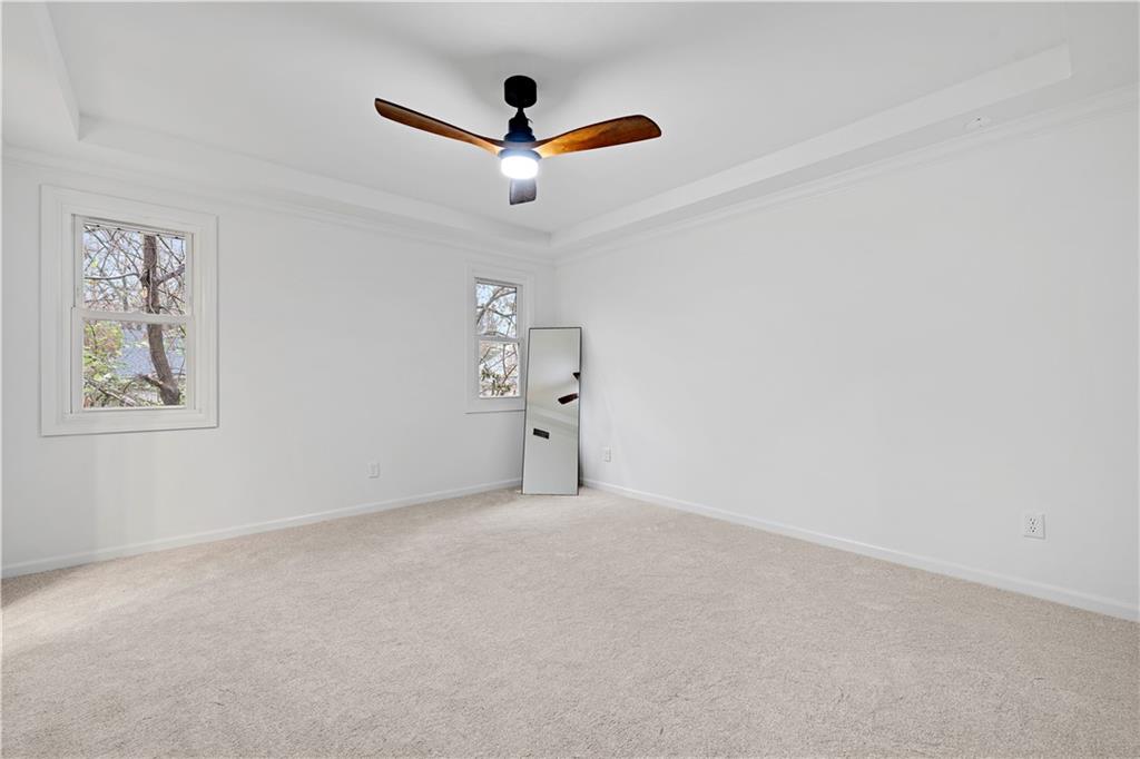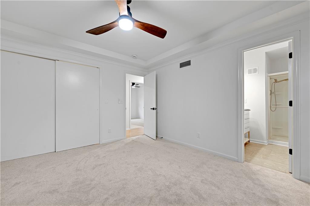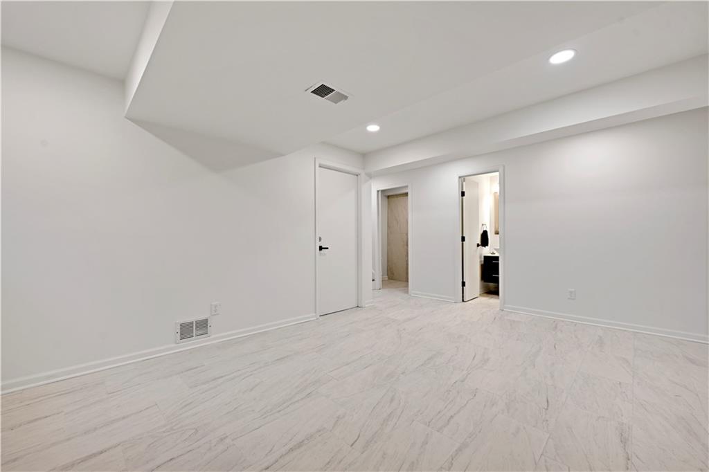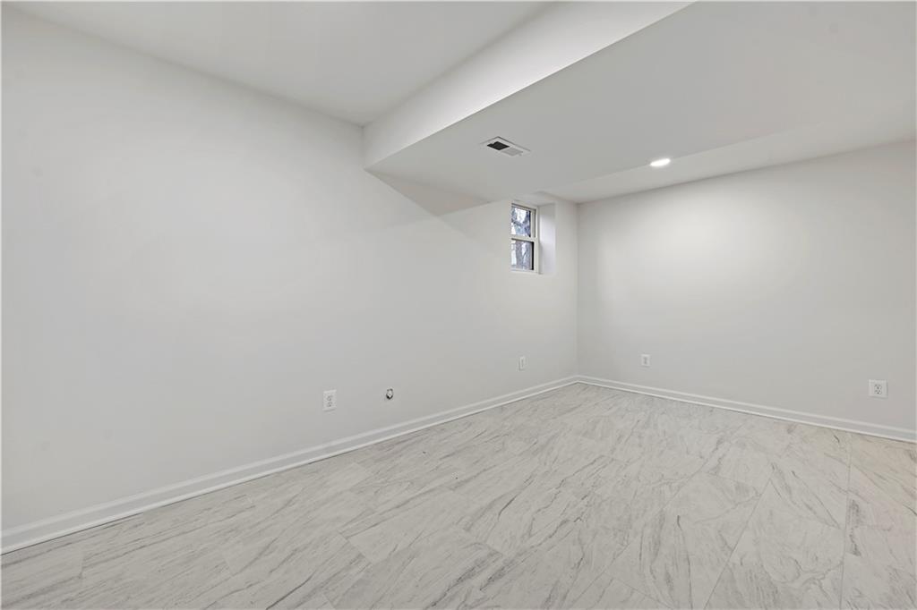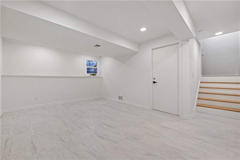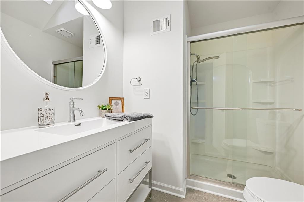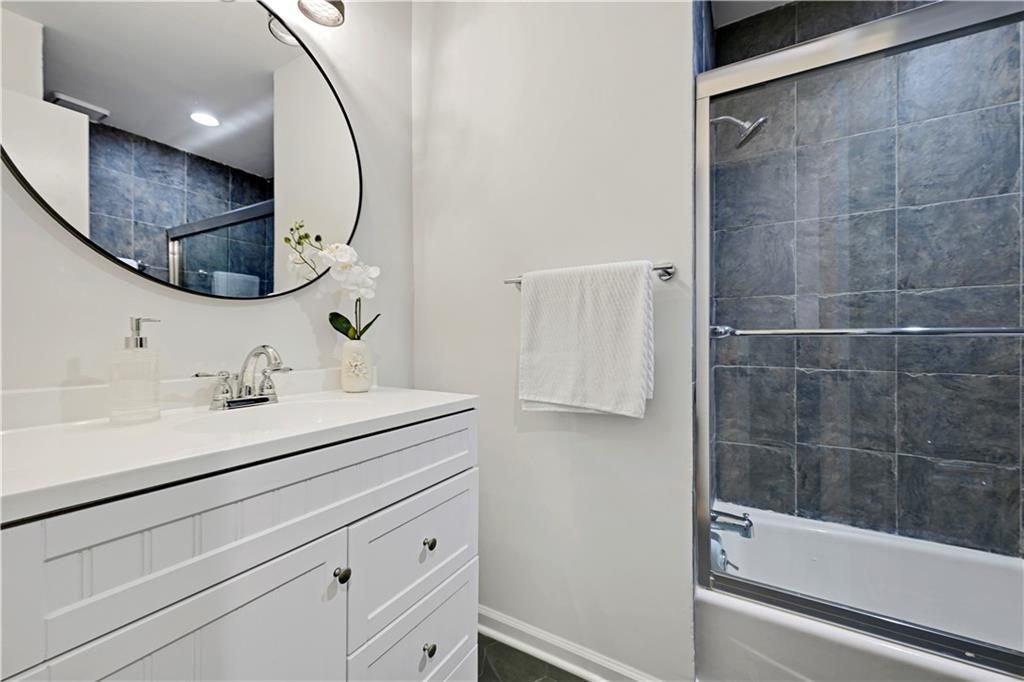 STUNNING TOP-TO-BOTTOM REMODEL! This charming home delivers an open-concept layout loaded with style and smart updates. The living room features a sleek black brick fireplace and beautiful hardwood floors that run throughout the main level and staircase, all flowing seamlessly into the brand-new kitchen. The kitchen is completely redesigned with new cabinetry, quartz countertops, subway tile, an electric range with a hidden pop-up/down vent fan, a breakfast bar, a window over the sink, and a cathedral ceiling with skylight for incredible natural light. There’s also a breakfast area plus an adjoining space that can function as a dining room, office, or playroom—whatever fits your lifestyle. A door just off the living room opens to a huge deck overlooking mature trees for true privacy. Head upstairs to find three bedrooms, including a spacious primary suite with its own fully renovated bath featuring gorgeous tilework, upgraded shower heads, and a new vanity. The second full bath is also freshly updated. The lower level offers a tiled family room, a 4th bedroom, and a stylish laundry room. Exterior vinyl siding and newer windows keeps maintenance simple. Fantastic location—close to highways, neighborhood parks, schools and shopping! Shows even better in person...THIS ONE IS A 10+!