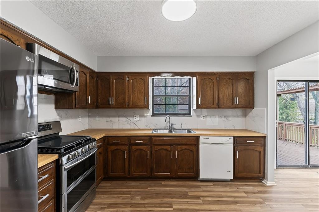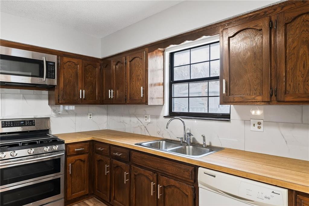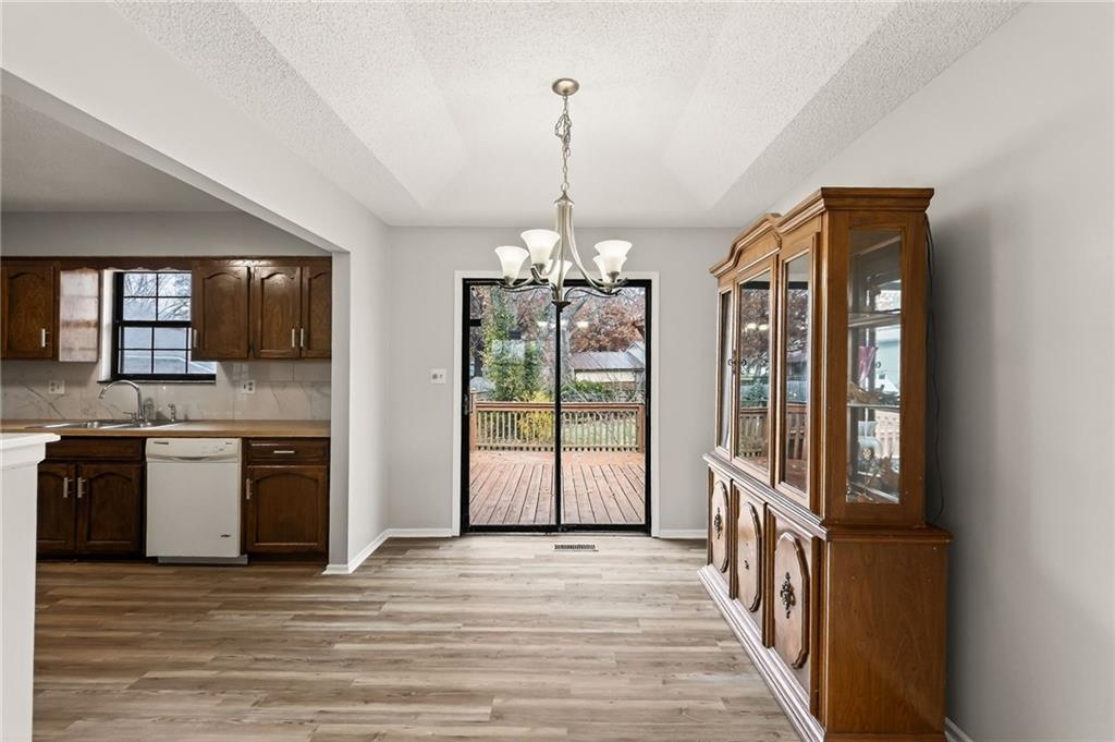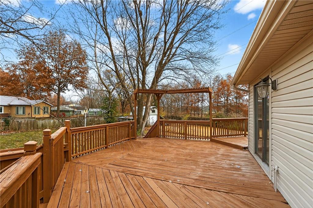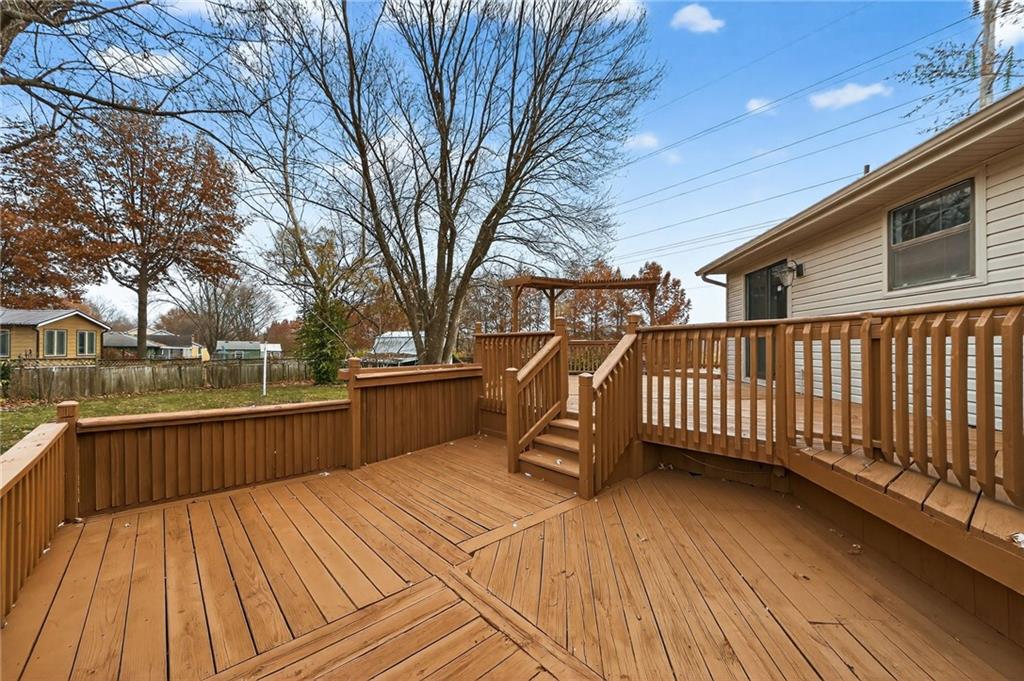 Welcome to your future home! This beauty has everything you could possibly look for in a house; elegance, updates, space, and privacy. This home features three large bedrooms in the first floor; master bedroom has its own full bathroom and double door to exit to the wrap around deck for a beautiful morning coffee. There are also two spacious bedrooms along with full bathroom in the hallway. The living room is large with big windows to offer daylight along with cozy wood fireplace. The kitchen is beautifully updated with lots of cabinets, new flooring, backsplash, lighting, and much more. The kitchen oversees the bright dining room that offers double door to exit to the huge deck overseeing the large green and private almost half an acre backyard. The lower level offers the forth bedroom along with a second fireplace, play area, cute play room for the little ones, the third full bathroom and laundry room. There are lots of storage space and exit to the double garage with workshop space, counter tops and plenty of space for your tools. The backyard is almost half an acre. In addition to the surrounding deck that oversees the yard, there is an extra lot that house a large shed that was used as a man cave. It is equipped with electricity and heat, has a TV and space in it and next to it for working on tools, cars, or any of your potential hobbies. Location is excellent and super close to downtown, Shops highways, and more! It is centrally located to Grandview, Raymore, Overland Park, Lee’s Summit, Kansas City, and SUPER CLOSE TO Long View Lake where Summer fund never ends!
